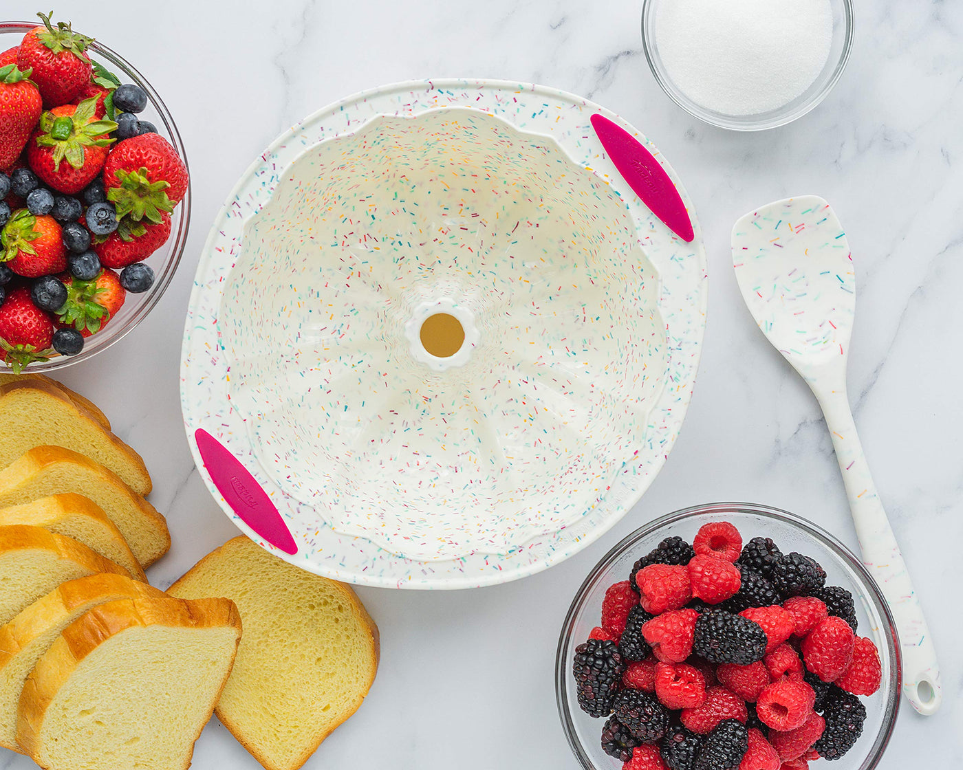 Trudeau 5118558 Structure Fluted Cake Pan Silicone Bakeware, Medium, Confetti White