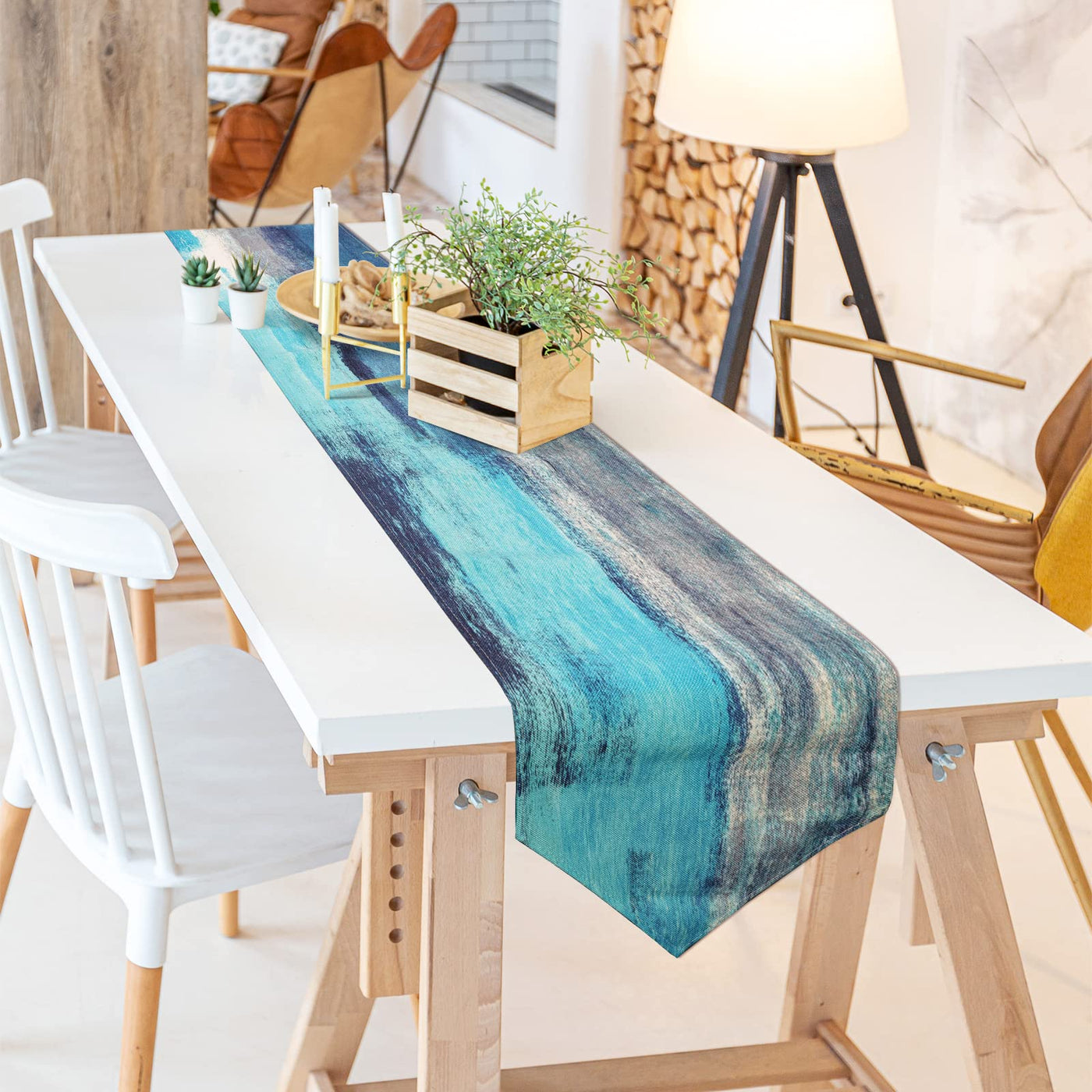 Turquoise And Grey Table Runners 90 Inches Long,Teal Abstract Modern Art Burlap Table Runners For Table Dresser Runner Farmhouse