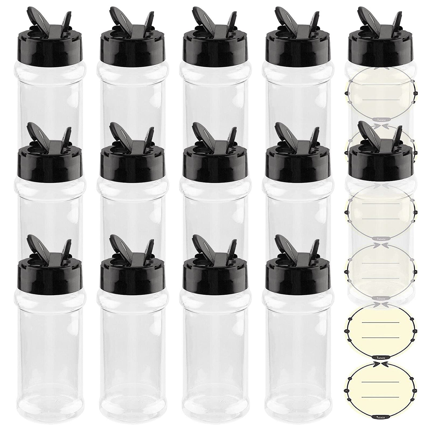Tuzazo 3 Oz Plastic Spice Jars With Shaker Lids And Labels, 14 Pcs Clear Empty Spice Bottles Seasoning Containers For Spice, Her