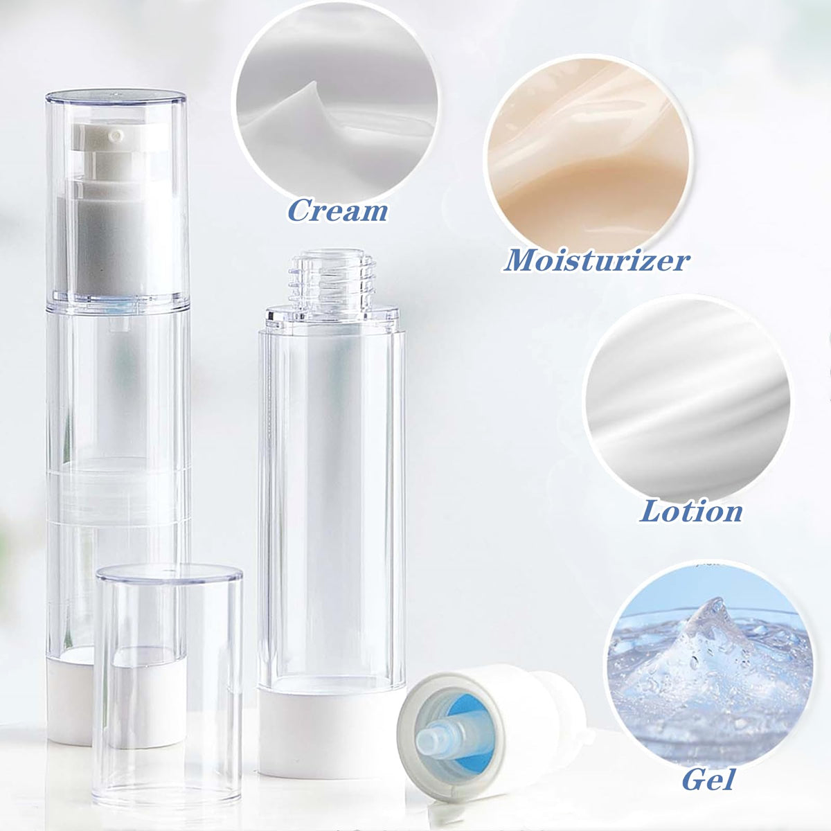 Tuzazo 6 Pack 1.7Oz/50Ml Airless Pump Bottles, Clear Plastic Travel Size Pump Bottles, Refillable Cosmetic Containers Cream Disp
