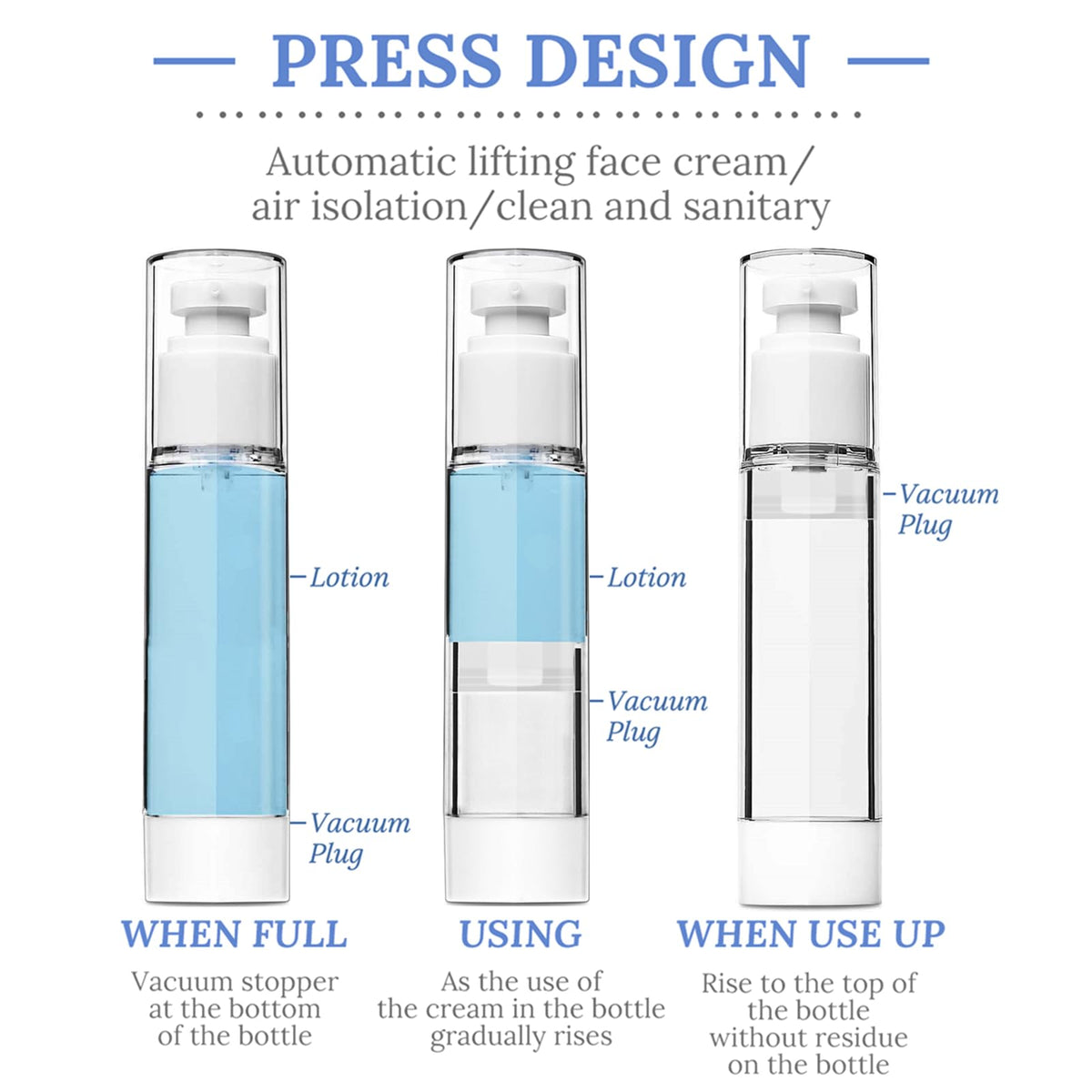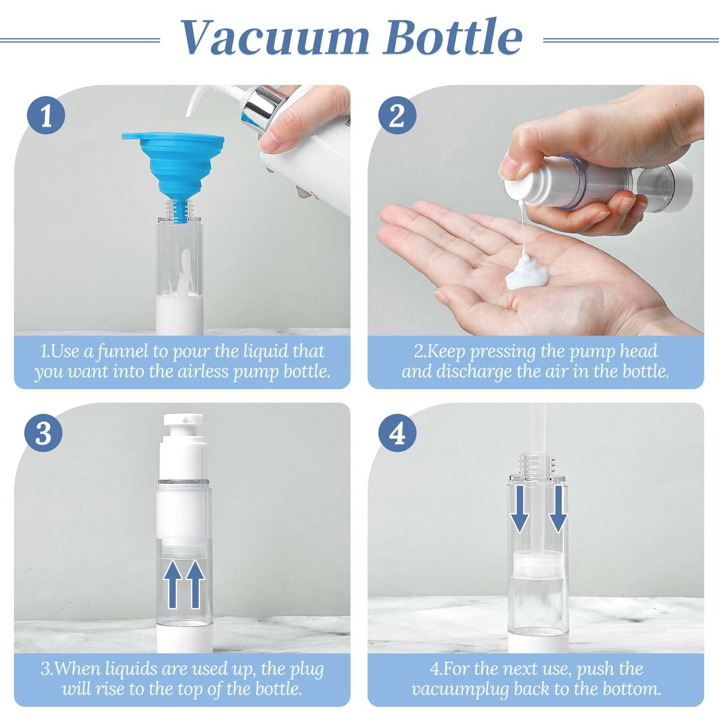 - Q: How do I fill the airless pump bottles? A: To fill the bottles, simply use a funnel to pour the product into the bottle, then tighten the cap securely.
