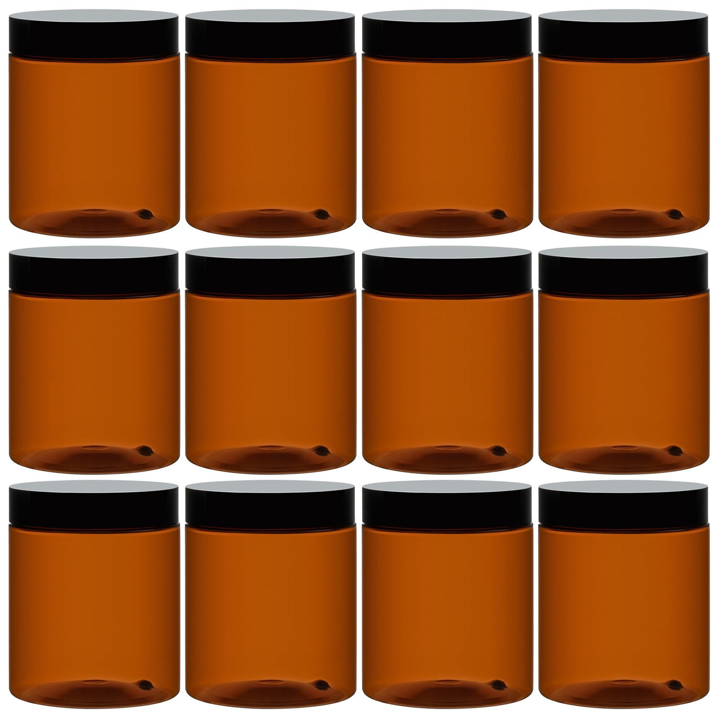 Tuzazo 8 Oz Amber Plastic Cosmetic Jars Leak Proof Container With Lids For Cream, Lotion, Powder, Ointments, Beauty Products, 12
