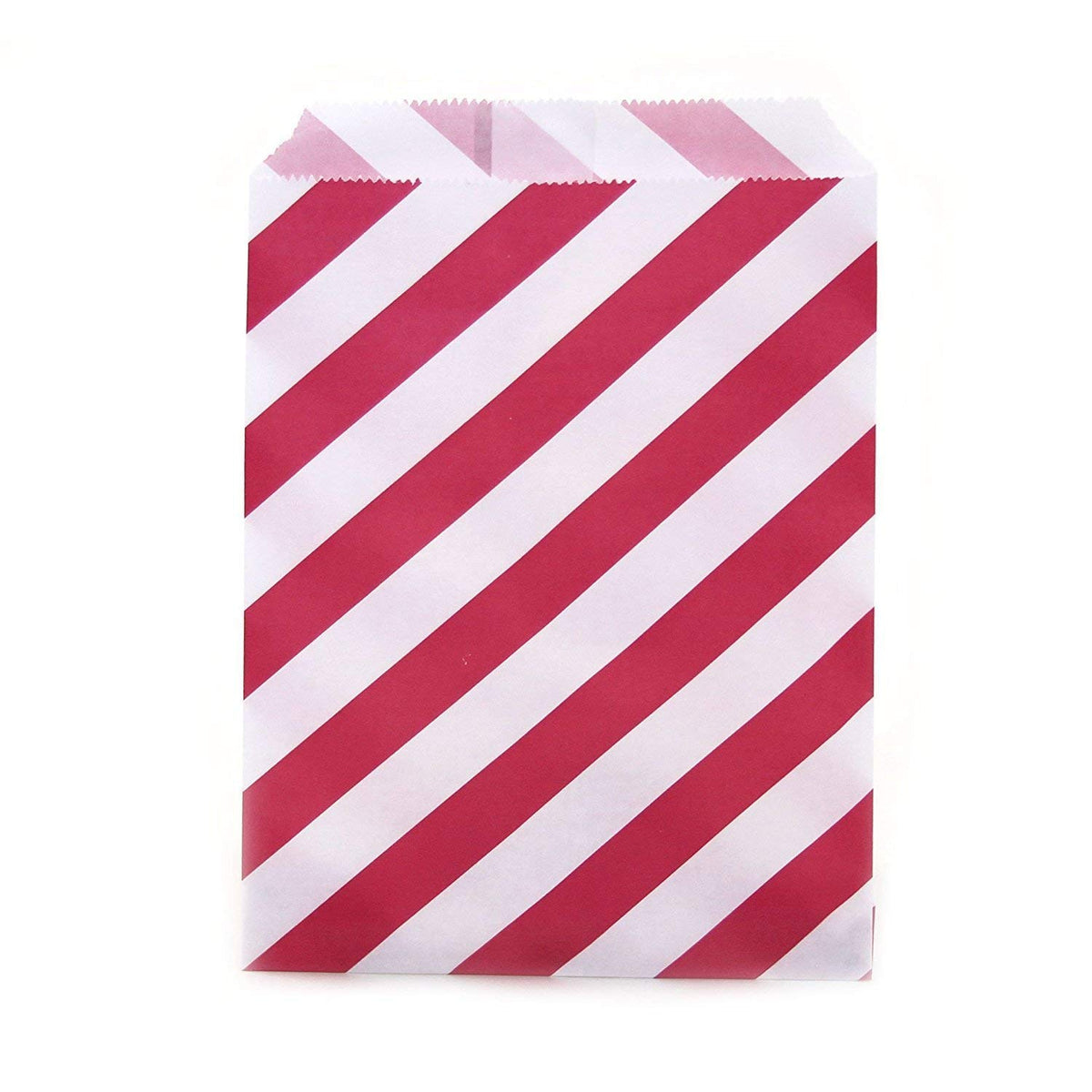 Tvoip 50 Pcs 5 X 7 Inches White And Red Striped Paper Bags,Holiday Wedding Christmas Favor Candy Treat Bags