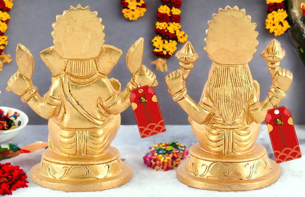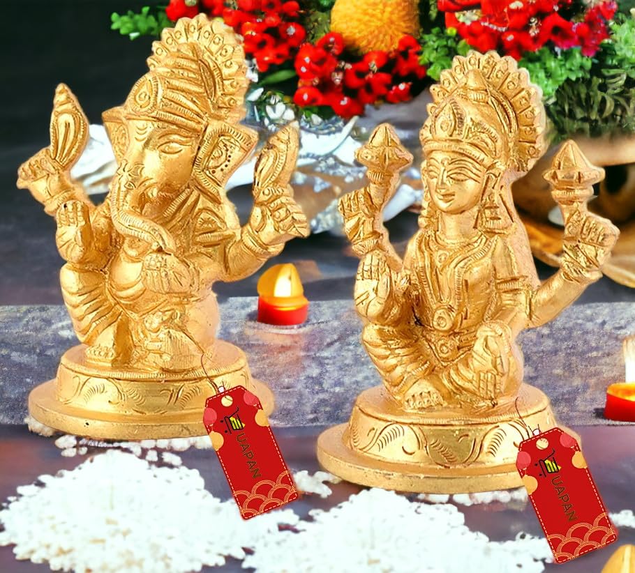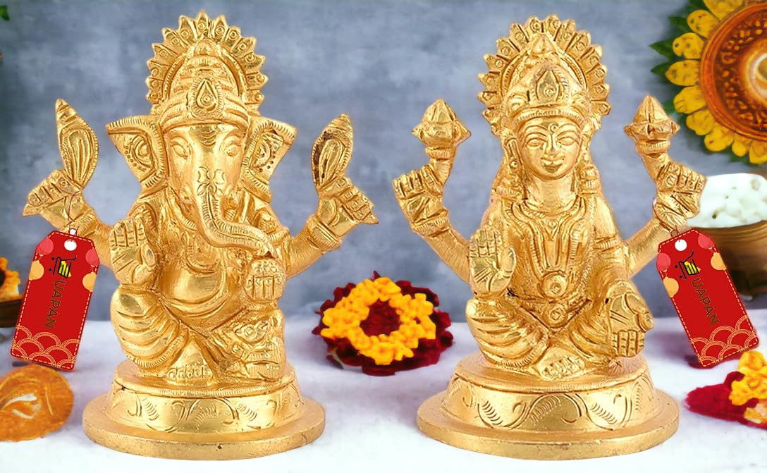 Uapan Brass Idol Murti I Pooja Poojan Temple Daily Worship 100% Brass Material I Laxmi Ganesh Brass Idol (Medium Ganesh And Laxm