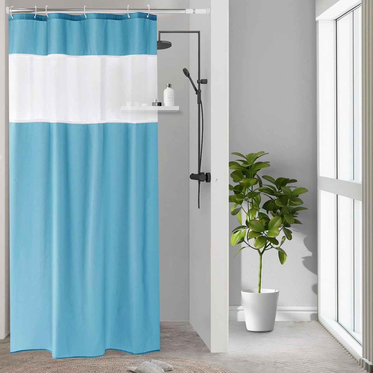 UFRIDAY 36x72 Inch Stall Shower Curtain with Mesh Window Soft Fabric Solid Bathroom Curtain with Hooks Weighted Hem Heavy Duty Water Repellent Light Blue