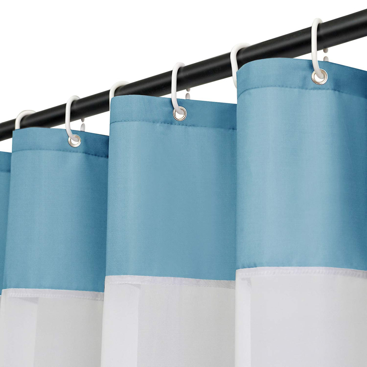 UFRIDAY Shower Curtain Light Blue and White Polyester Fabric Shower Curtain with Liner Window 72 x 72 inch