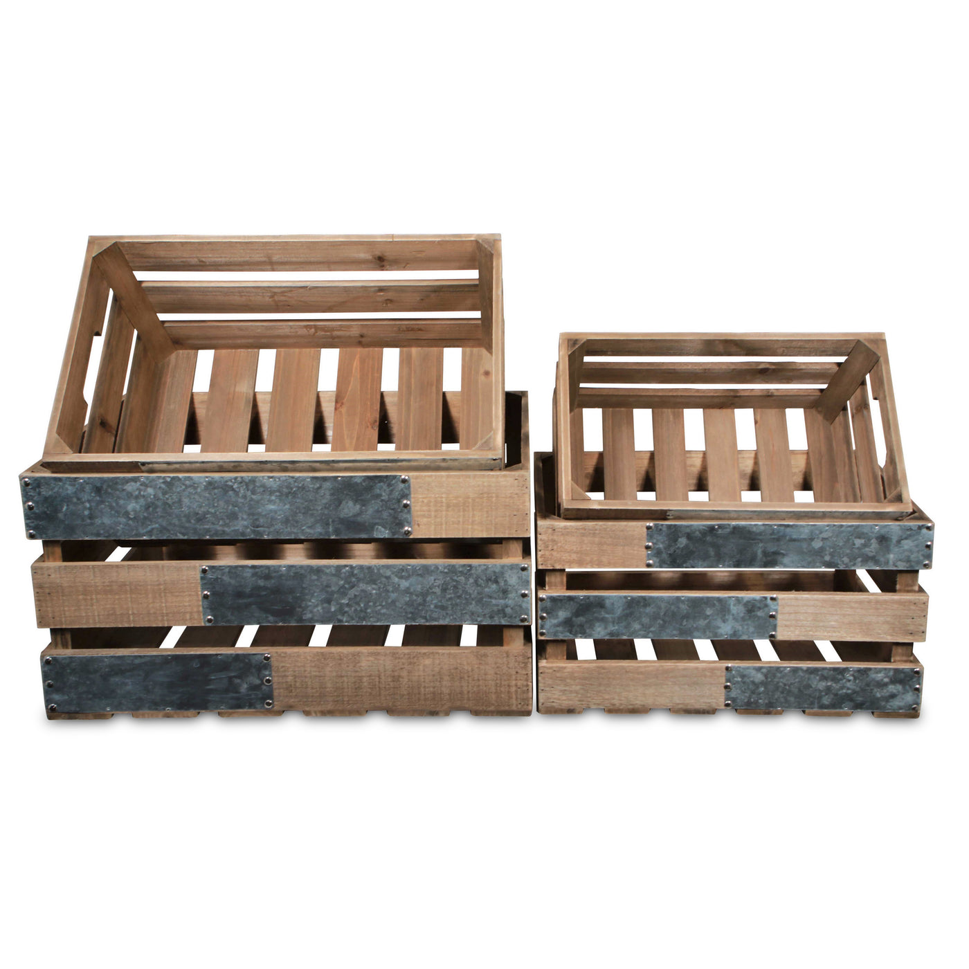 Uliel Set Of 4 Galvanized & Brown Crate Set