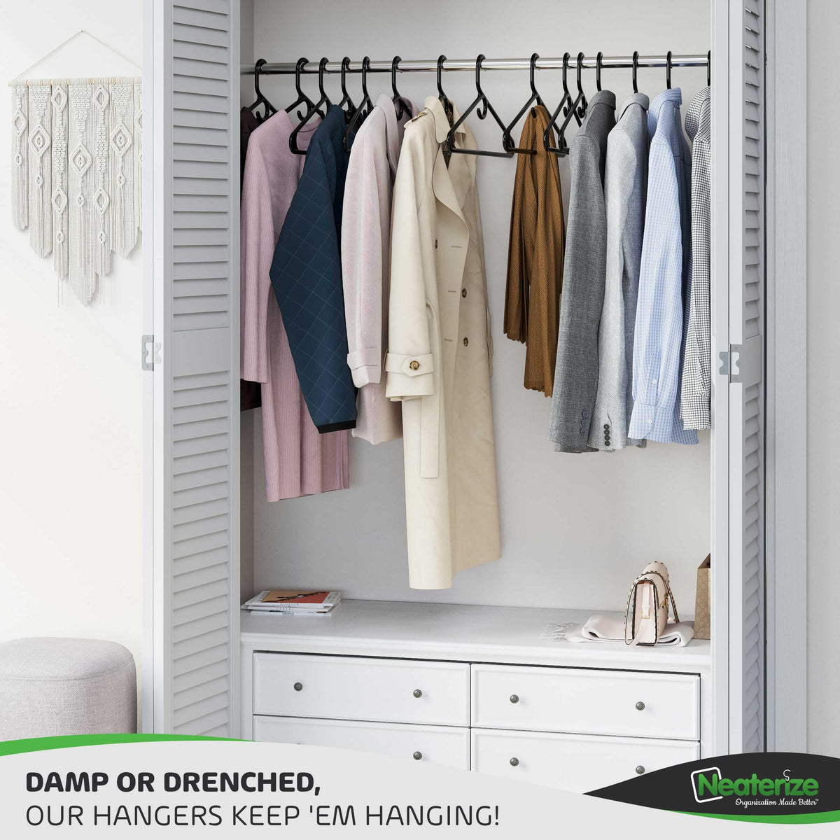 - Q: How durable are these hangers compared to standard hangers? A: The Neaterize hangers are made with extra thickness and a strong bottom bar with reinforced edges, making them more durable than standard hangers.