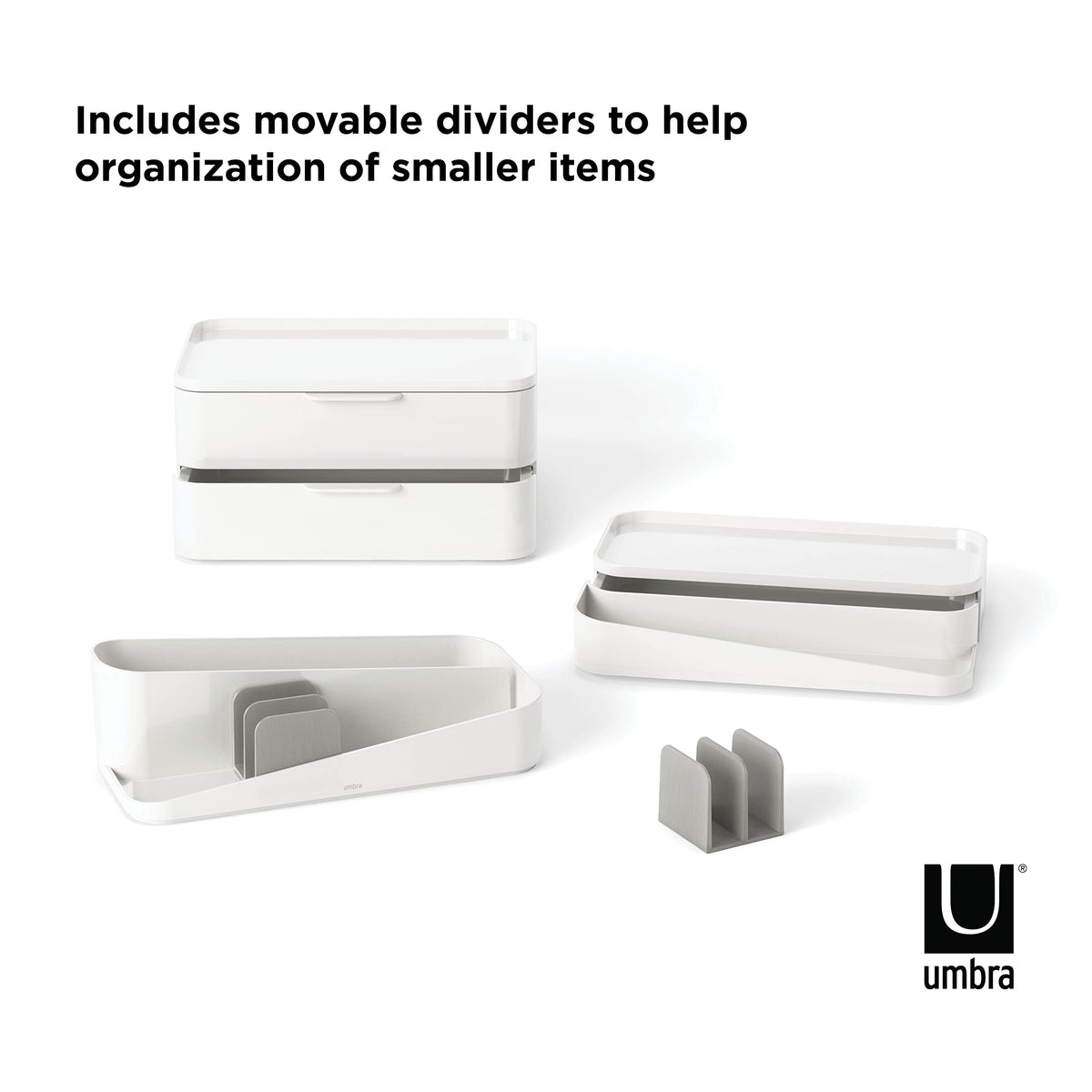 Umbra Glam Large Three Drawers Cosmetic Organizer With Rubber Feet And Removable Dividers (White And Gray)