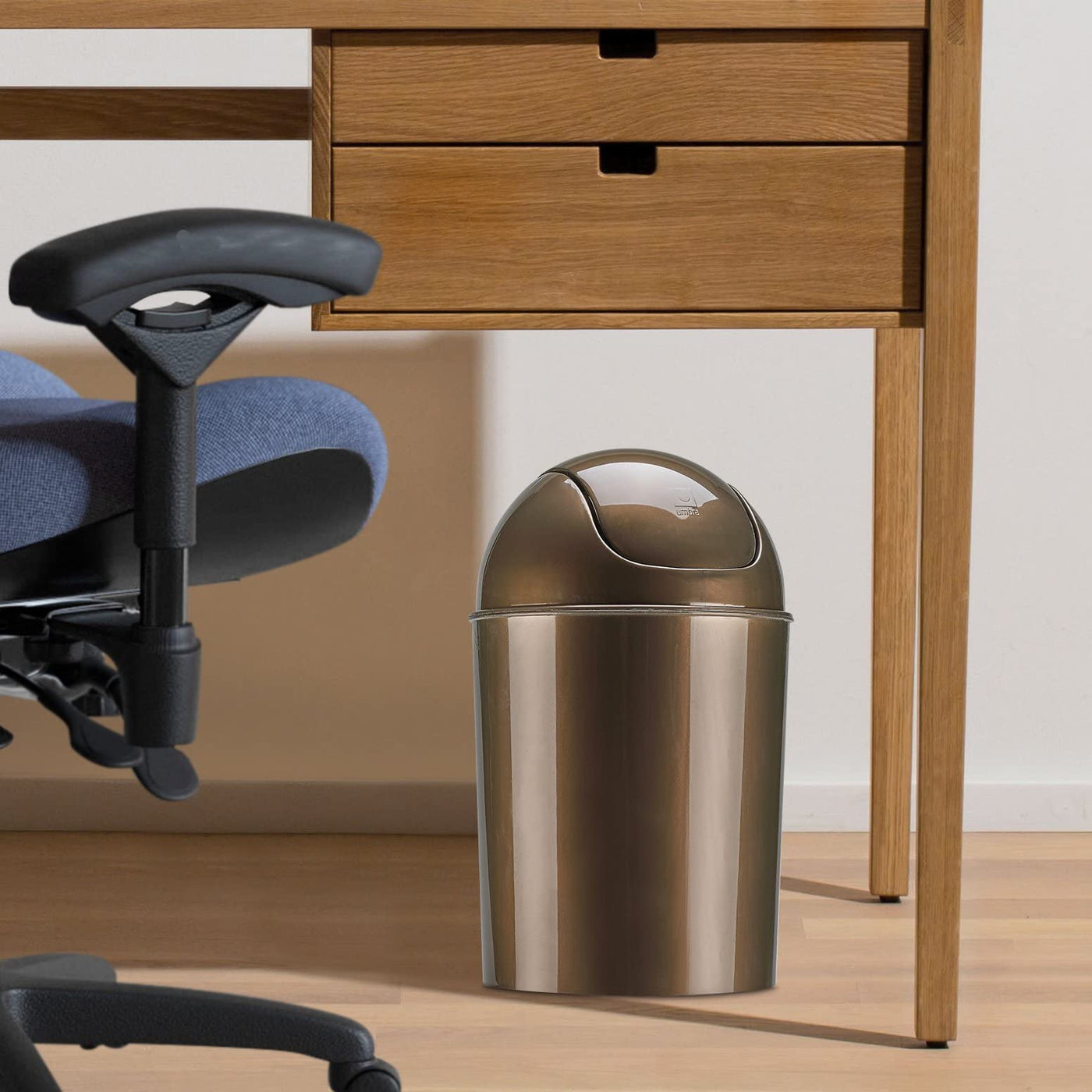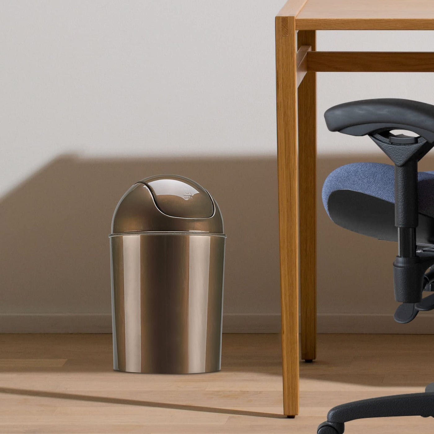 Umbra Mini Waste Can 1-1/2 Gallon With Swing Lid, Bronze, Grey/Steel