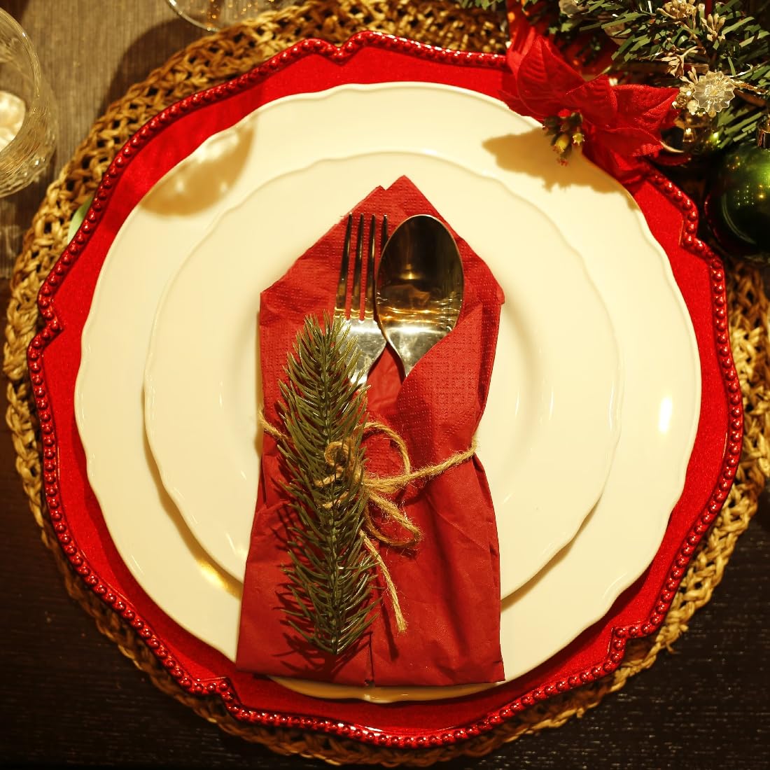 Umisriro Hot Red Scalloped Charger Plates With Beaded Rim,13 Inch Plastic Dinner Chargers For Wedding And Party Table Settings,