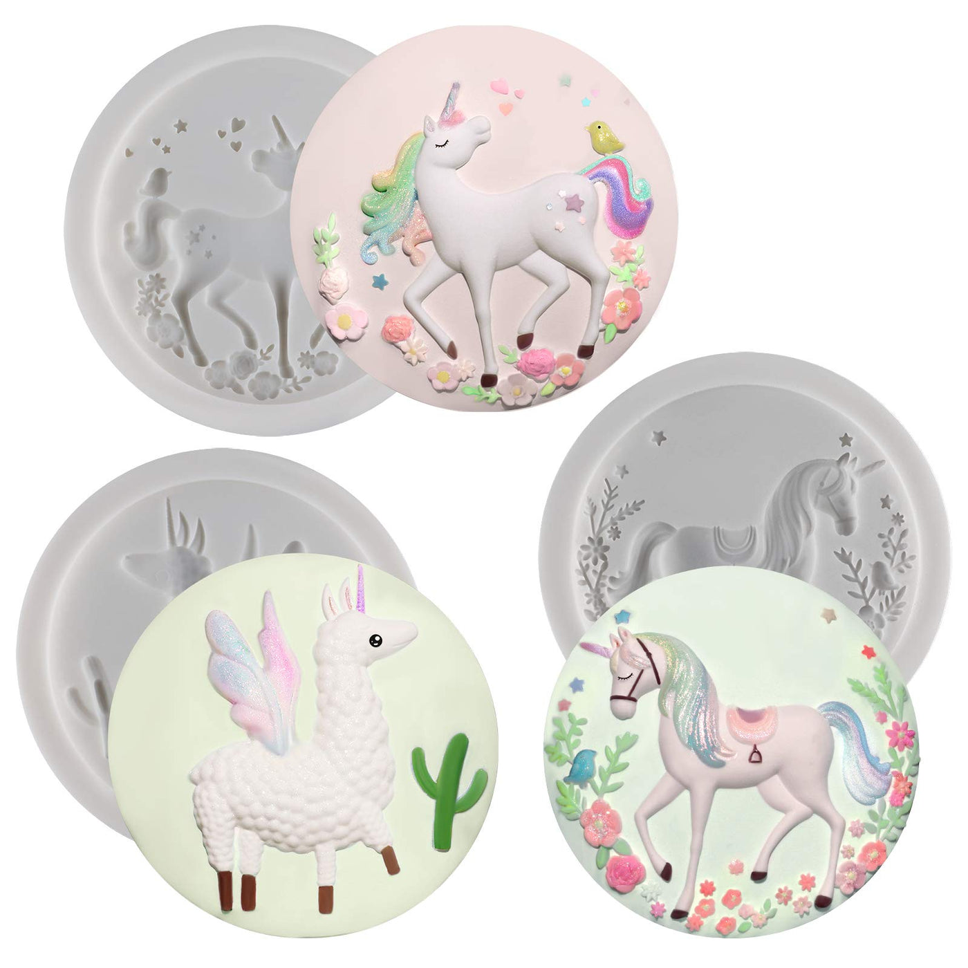 Unicorn Llama Fondant Silicone Molds Set Llamacorn Cake Decorating, Cupcake Topper, Chocolate, Epoxy Resin, Polymer Clay Art Cra