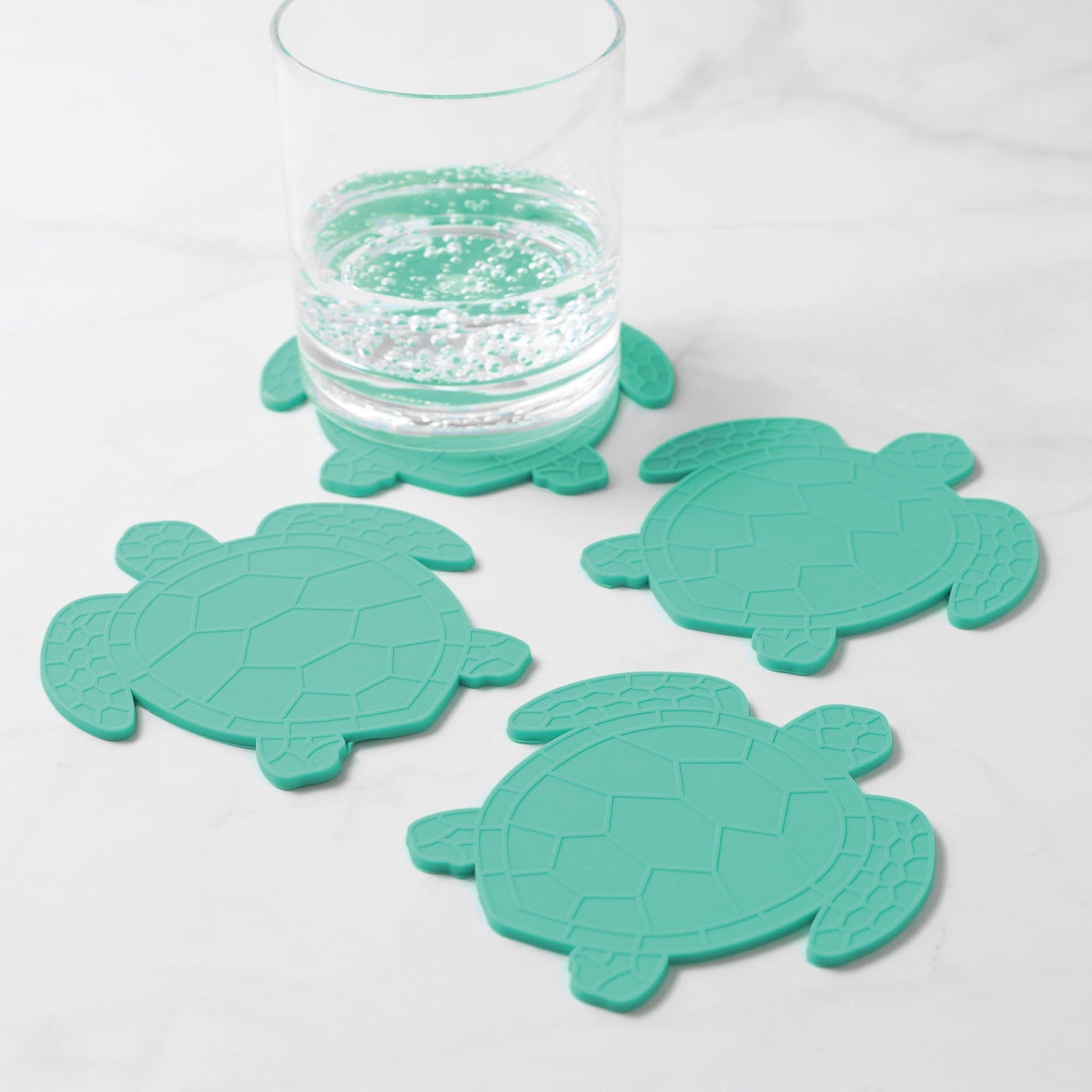 - Q: How many coasters are included in a set? A: Each set of UPware Sea Turtle-Shaped Coasters includes four individual coasters.