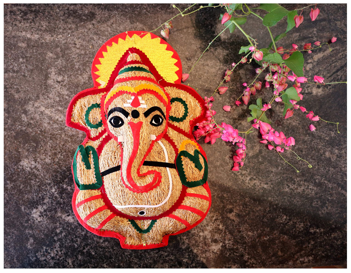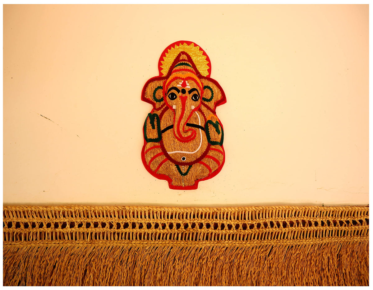 Usira Vetiver Mantapa Ganesha Ji Statue,Ganpati Wall Hanging Sculpture Mantapa Lord Ganesh Idol Lucky Feng Shui Wall Decor (Golden),Big Mantapa Handicrafts