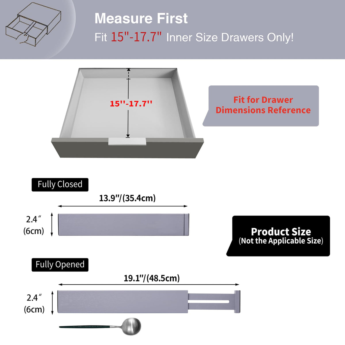 - Q: What drawer sizes are compatible with these dividers? A: These dividers are designed for drawers with an inner size of 15 inches to 17.7 inches. If your drawer's inner size exceeds 17.7 inches, consider opting for a larger size.