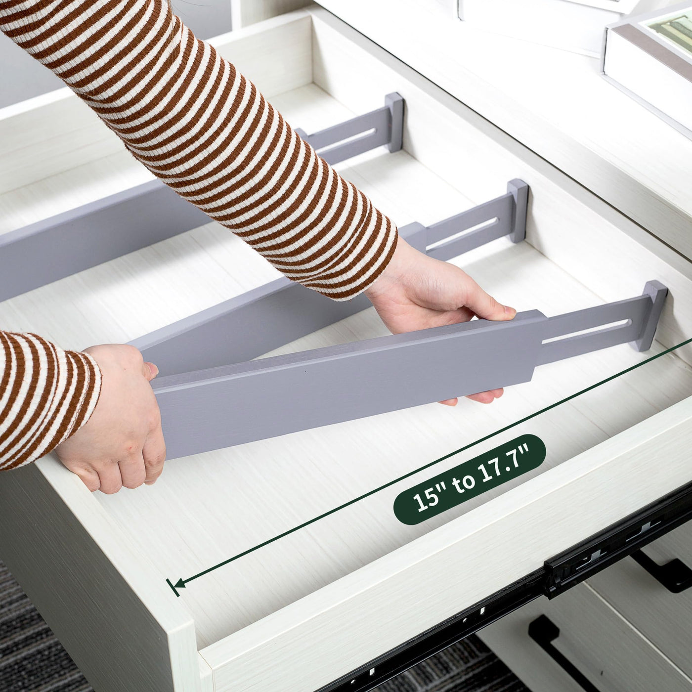Utoplike Drawer Dividers Bamboo, Gray Drawers Organizers Adjustable for Socks, Spring Loaded, Works in Kitchen, Dresser, Bathroo
