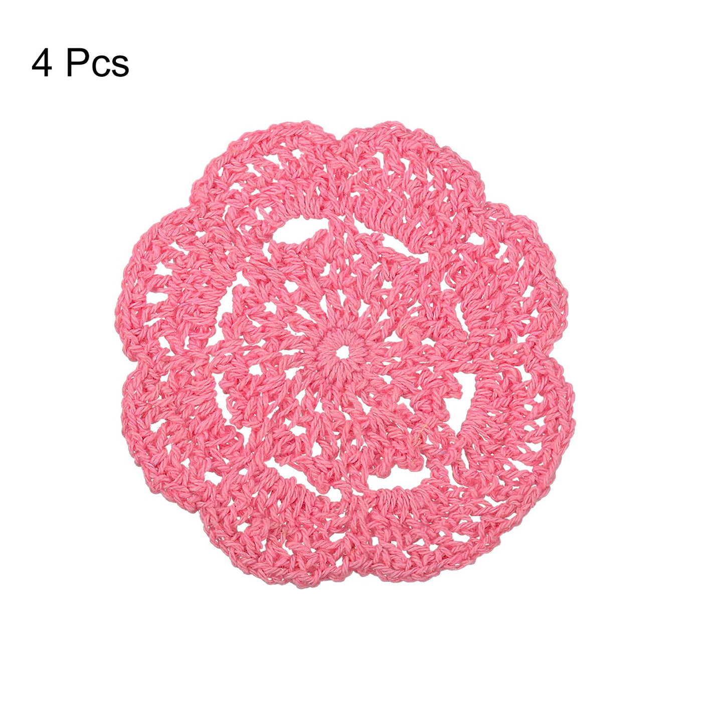 Uxcell Crochet Doilies, 4Pcs 4'' - Cotton Woven Fabric Coasters, Lace Round Handmade Coasters With Floral For Wedding Party Deco