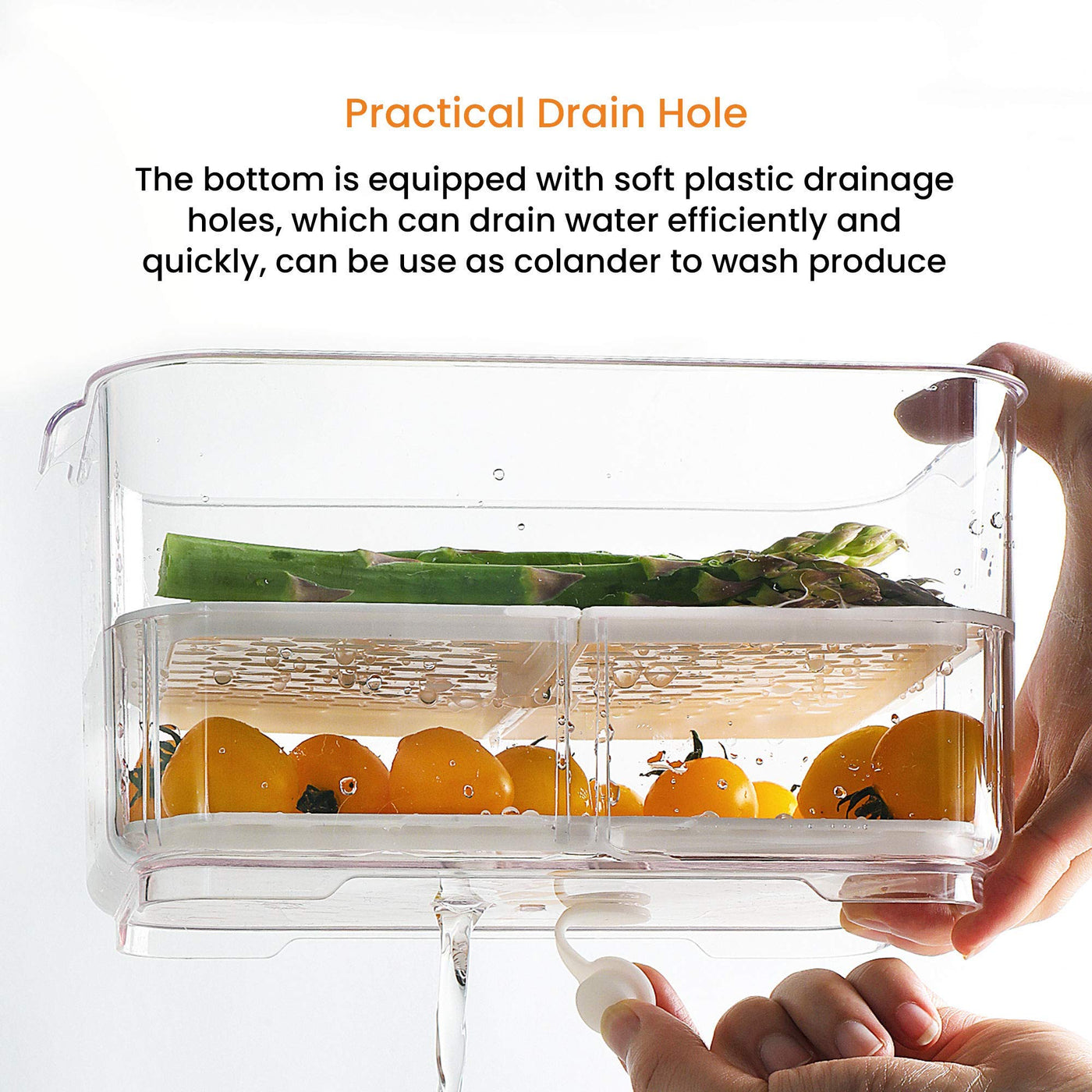 vacane Produce Saver with Lids 2 Piece Fruit Vegetable Storage Container with Vents Stackable Fridge Drawers Organizer Salad Lettuce Keeper For Refrigerator Bpa-free Fresh Keeper 5.7L&2.8L