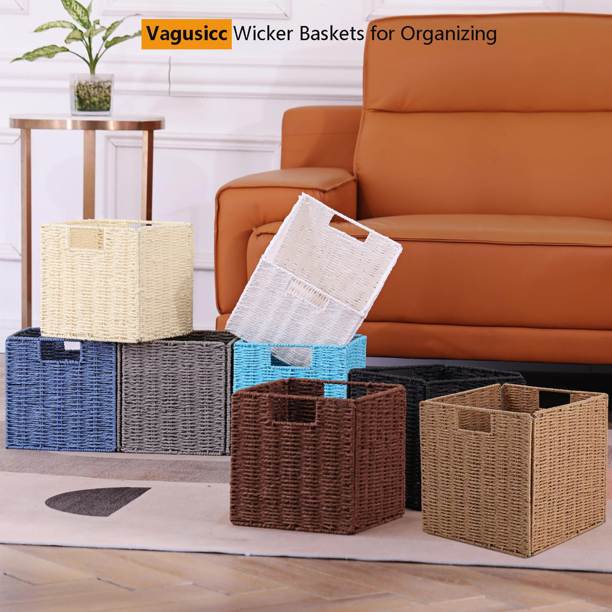 Vagusicc Storage Baskets, Set Of 2 Woven Wicker Baskets, Foldable Cube Storage Basket Bins, 13 Inch Large Wicker Storage Basket