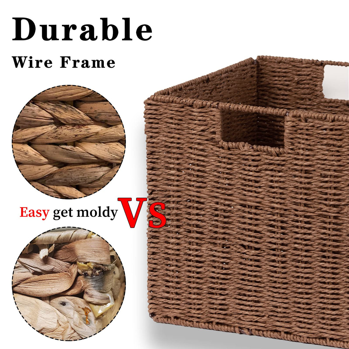 Vagusicc Wicker Baskets, Set Of 2 Hand-Woven Paper Rope Storage Baskets Woven, Foldable Cubby Storage Bins, Storage Basket For S