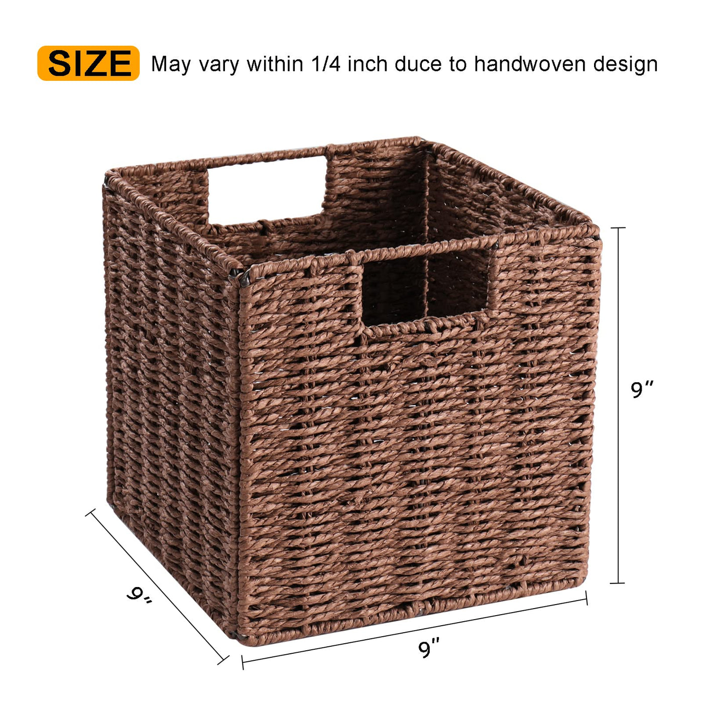 Vagusicc Wicker Storage Basket, Set Of 2 Hand-Woven Storage Baskets For Shelves, Foldable Cube Storage Baskets Bins With Handles