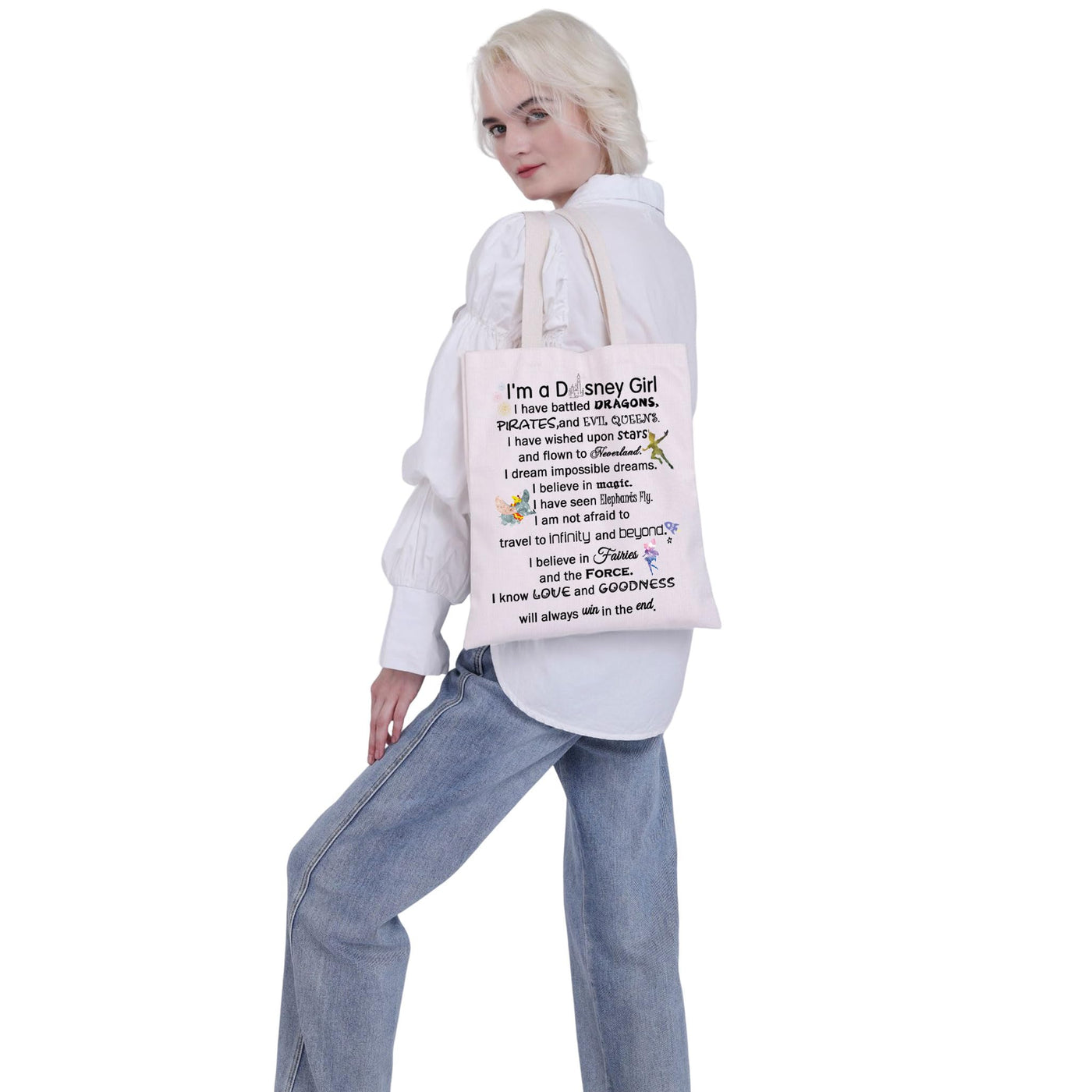Vamsii Girls Trip Gift Magic Kingdom Vacation Tote Bag Neverland Grocery Bag Fairies Travel Bag (Win In The End Tote)