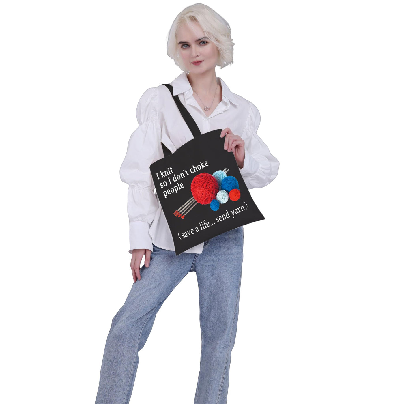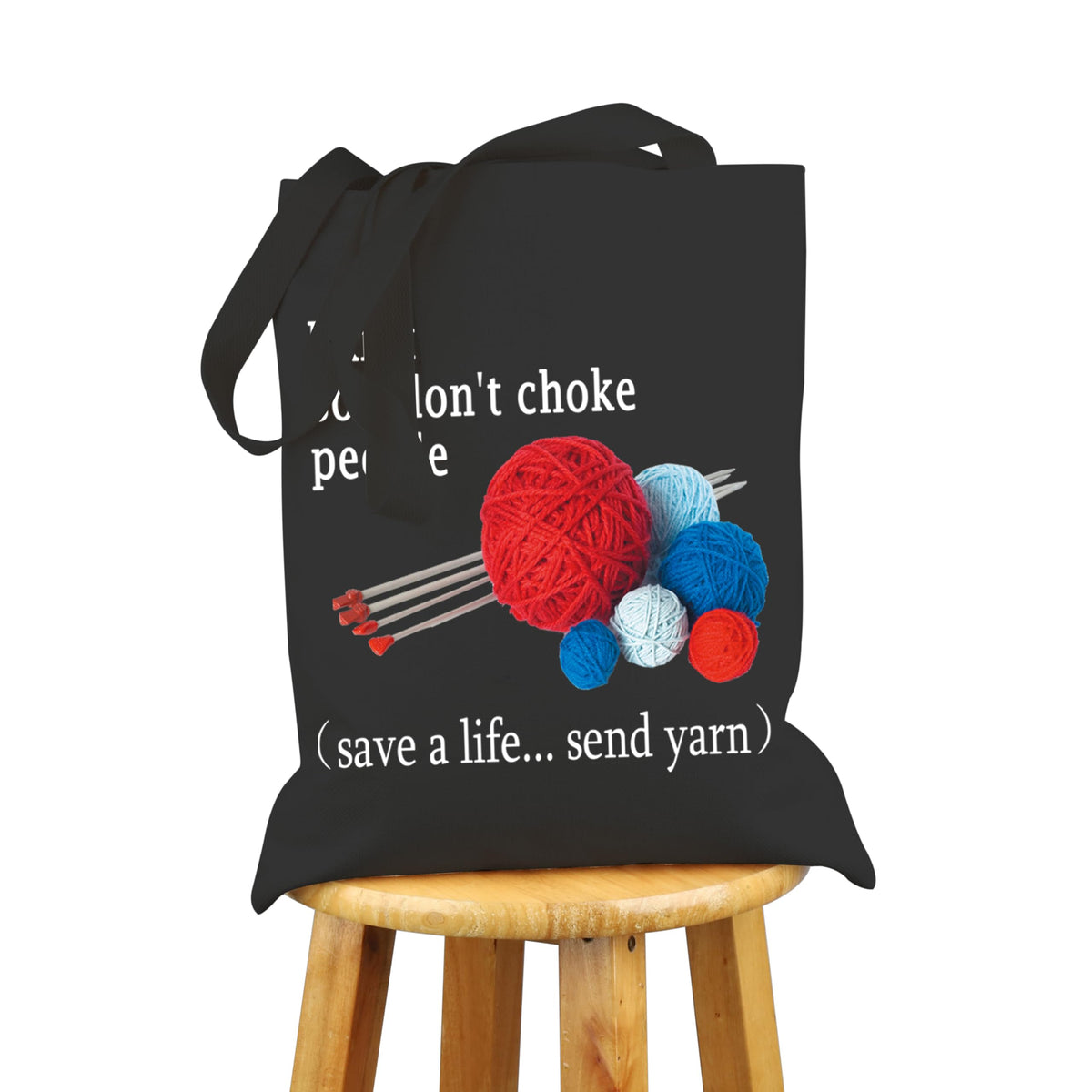 Vamsii I Knit So I Don'T Choke People Tote Bag Funny Knitting Lover Gifts Shoulder Bag Knitter Gifts Yarn Storage Bag (Blk-Send