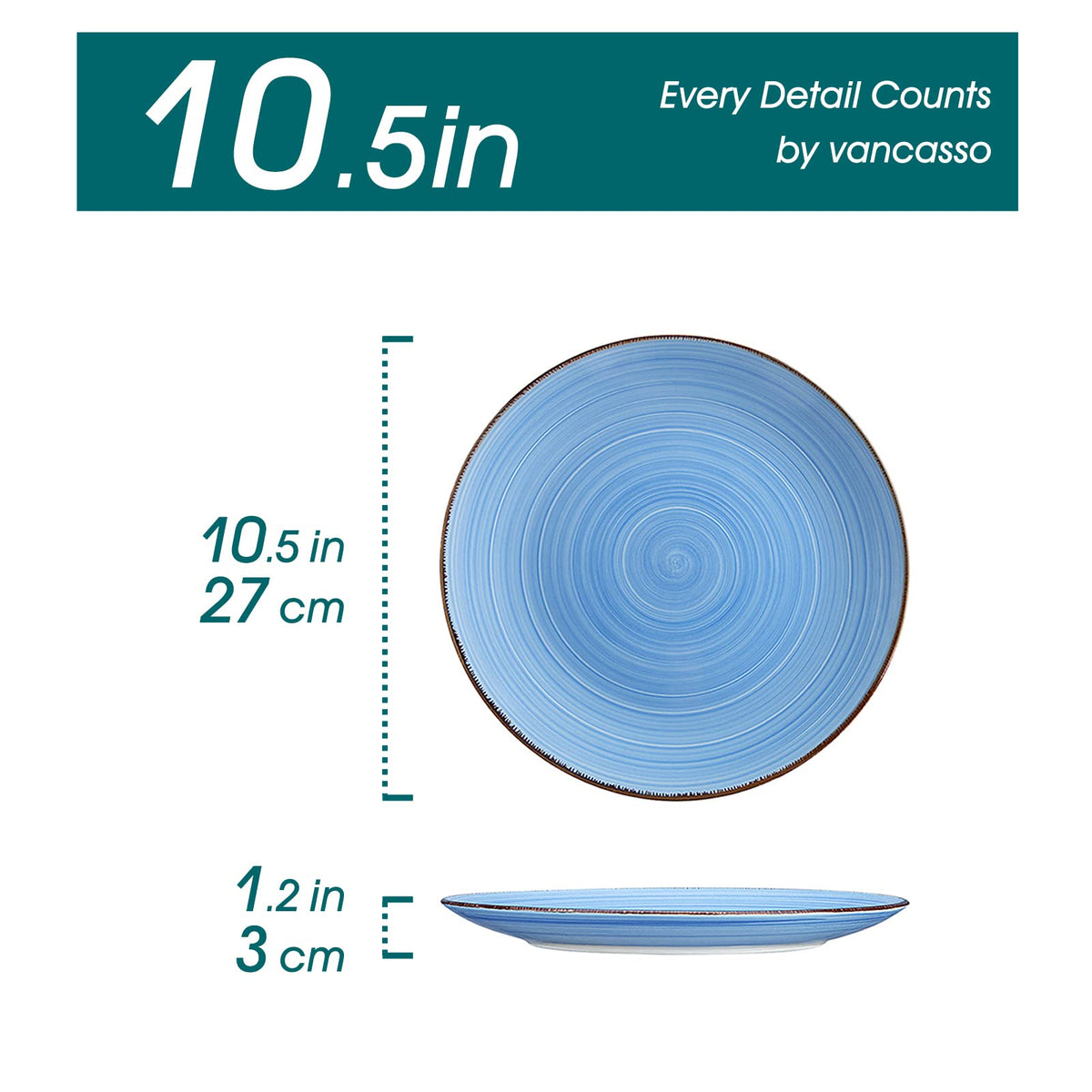- Q: How large are the dinner plates in this set? A: Each dinner plate in the vancasso Bonita set has a diameter of 10.5 inches.