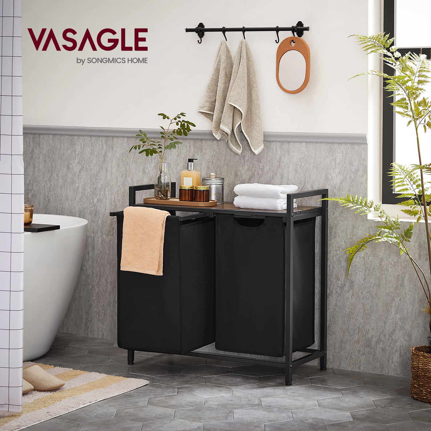 Vasagle Laundry Basket, 2-Compartment Laundry Hamper, Pull-Out And Removable Laundry Bags, Oxford Fabric, Metal Frame, 2 X 12.2L