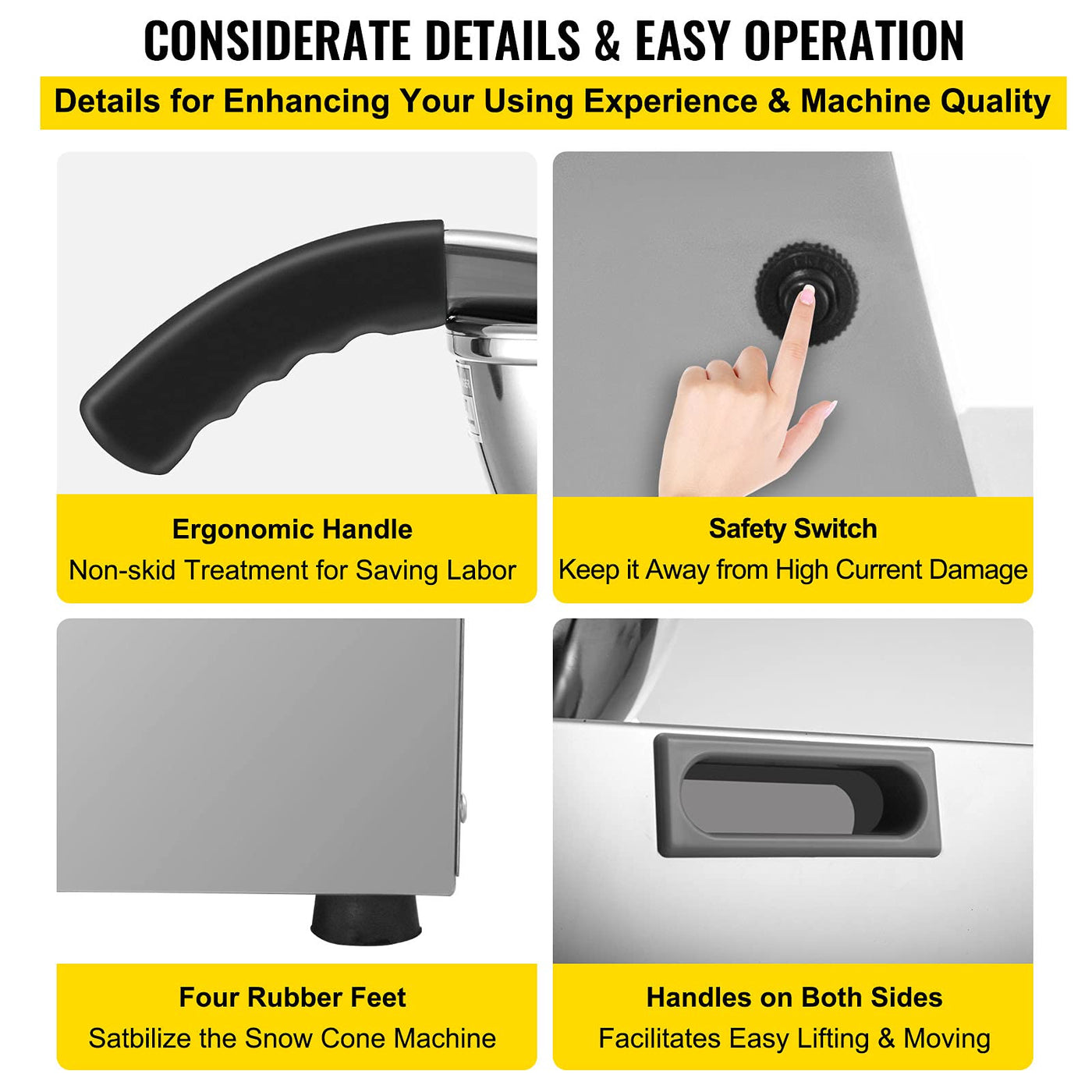 - Q: Is the VEVOR Snow Cone Machine easy to operate? A: Yes, it is designed for simple operation with a one-button switch, making it user-friendly for anyone.