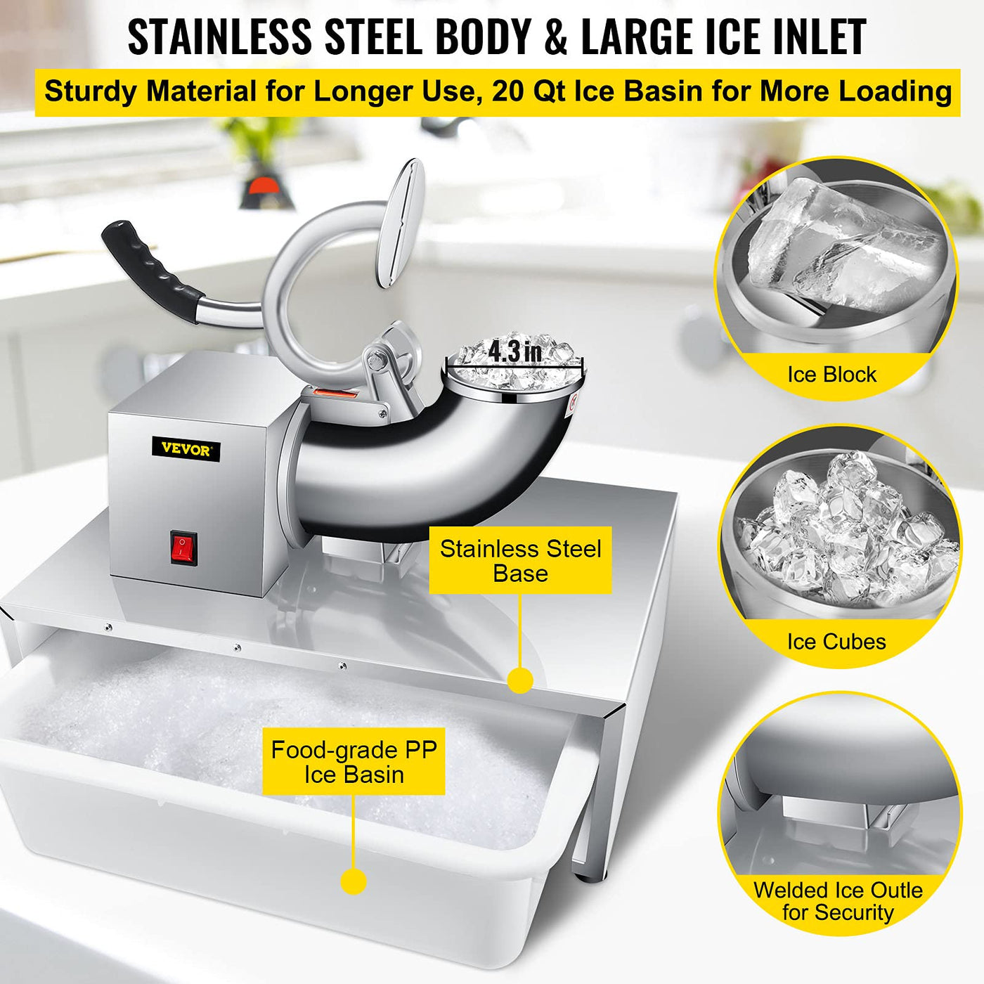 - Q: What materials are used in the construction of the ice shaver? A: The machine features a full body made of stainless steel, ensuring durability and ease of cleaning.
