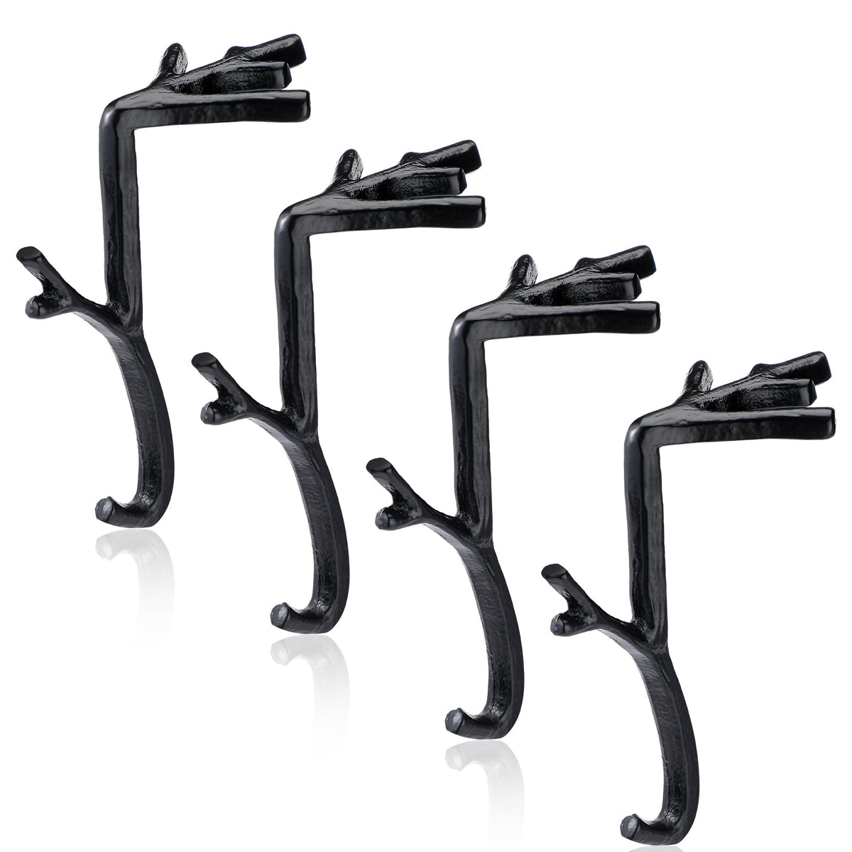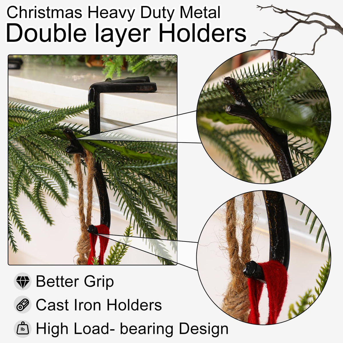 Vicenpal 4 Pcs Fireplace Stocking Garland Hanger for Mantel 2 in 1 Christmas Stocking Holder Two Hooks Durable Wrought Iron Meta