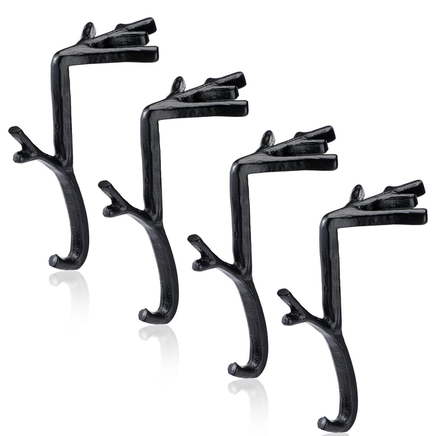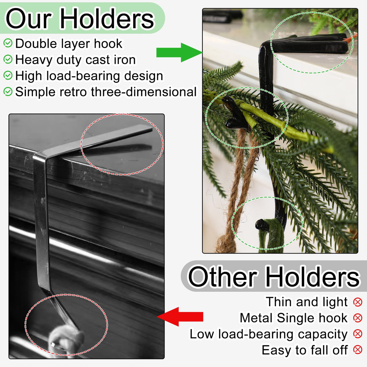 Vicenpal 6 Pcs Fireplace Stocking Garland Hanger for Mantel 2 in 1 Christmas Stocking Holder Two Hooks Durable Wrought Iron Meta