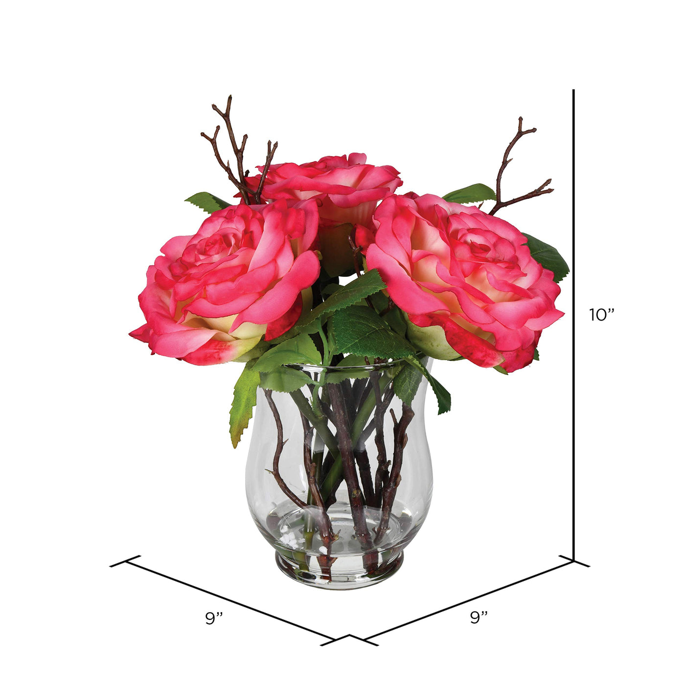 • Q: Does the arrangement come with a vase? A: Yes, the Vickerman Artificial Dark Pink Rose comes in a stylish clear glass vase that enhances its overall appearance.