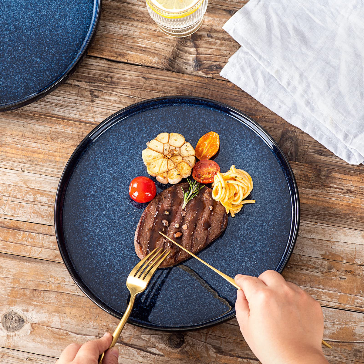 vicrays Ceramic Dinner Plates Set - Porcelain 10 Inch Flat Steak Pasta Pizza Plate Home Party Restaurant Plate Scratch Resistant Microwave Oven and Dishwasher Safe Set of 6 Blue