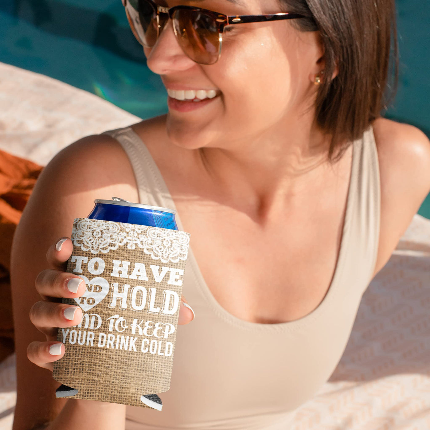 Victorystore Can And Beverage Coolers: Custom Rustic Burlap To Have And To Hold Wedding Can Coolers (150)