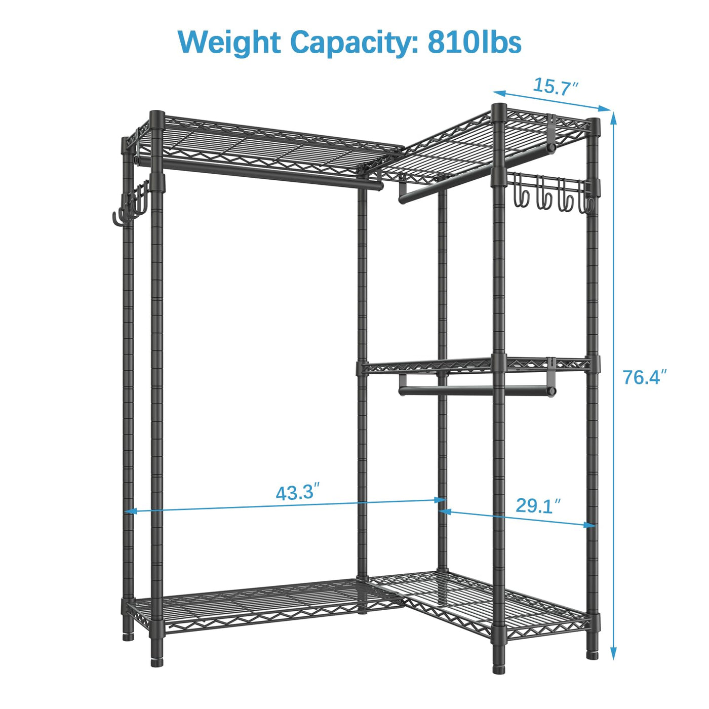 Vipek L4 Garment Rack L Shaped Clothes Rack For Corner, Freestanding Portable Wardrobe Closet Heavy Duty Clothing Rack With 3 Ha
