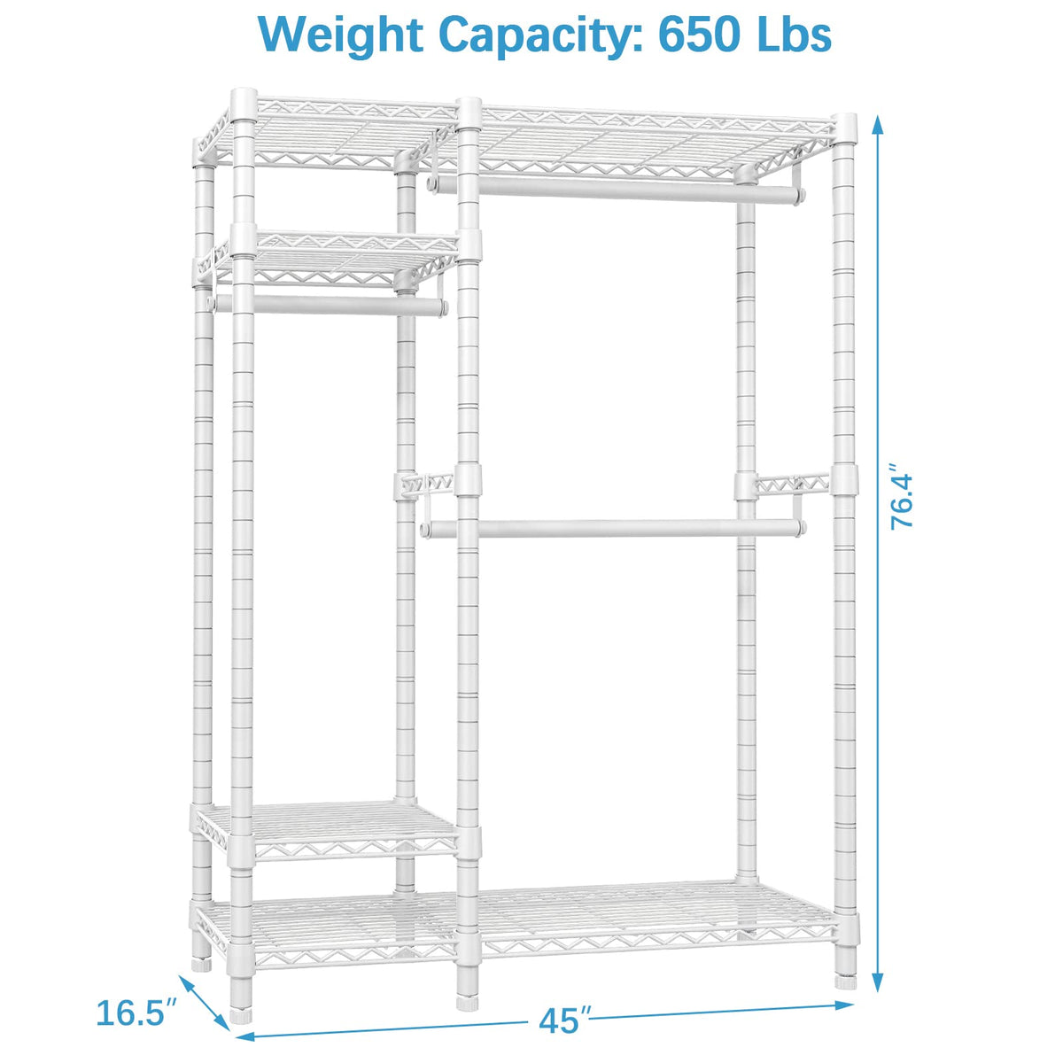 - Q: What is the maximum load capacity of the VIPEK V2S Garment Rack? A: The maximum load capacity of the VIPEK V2S Garment Rack is 650 pounds.
