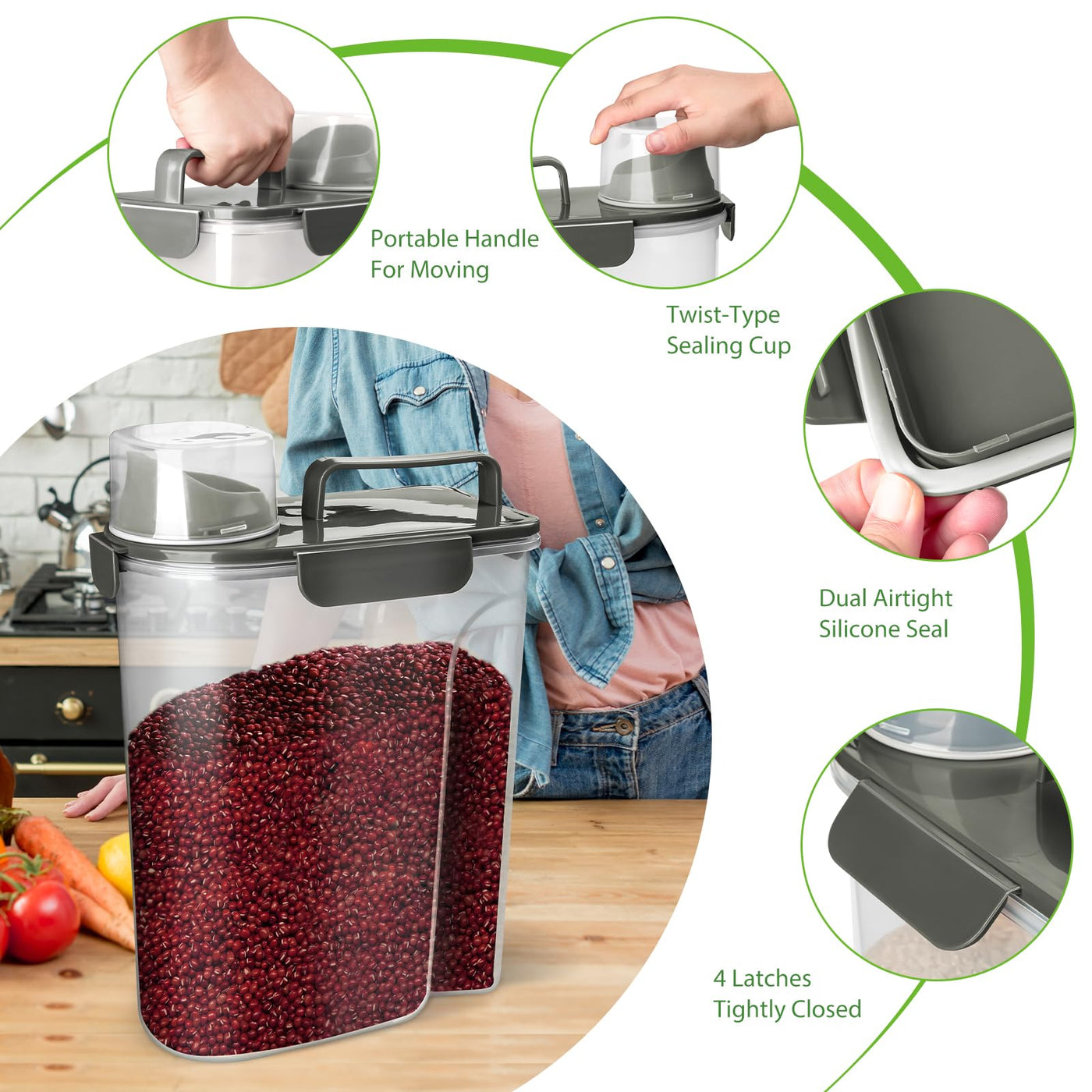 - Q: Can this container be used for other dry foods? A: Absolutely! This container is versatile and suitable for storing various dry foods such as flour, oatmeal, cereal, grains, and snacks.