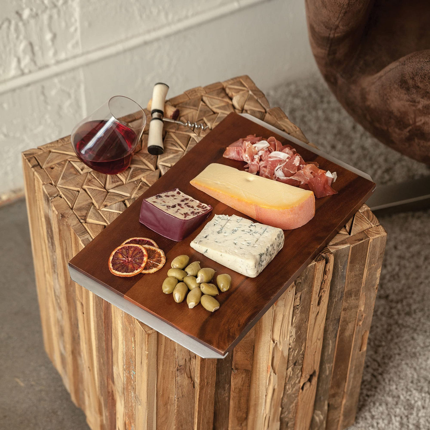 - Q: How can I enhance my presentation with this cheese board? A: You can enhance your presentation by pairing the cheese board with other dark stained kitchen and serveware accessories for a cohesive look.