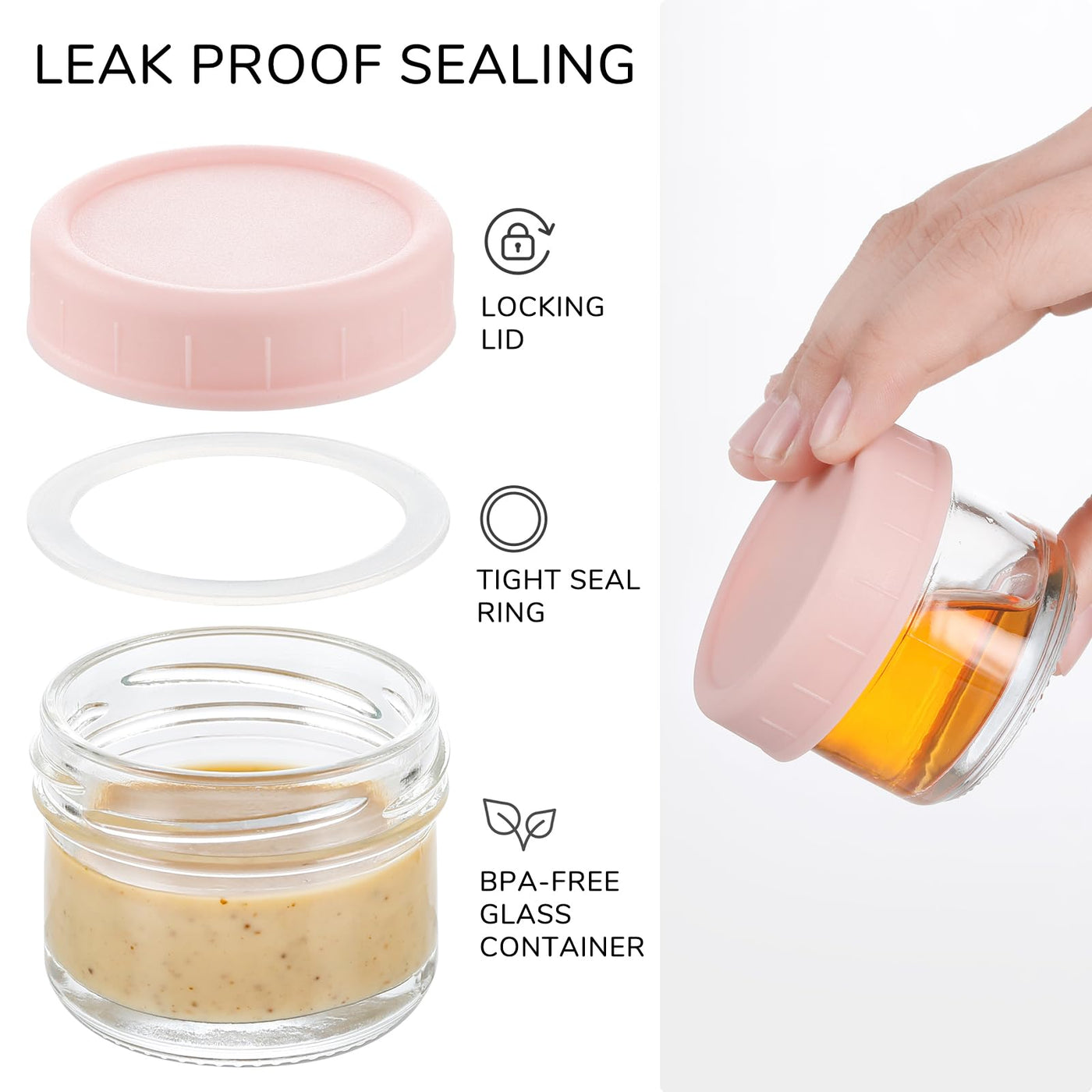 Vitever [6 Pack] Salad Dressing Container To Go, 1.7 Oz Glass Small Condiment Container With Lids, Dipping Sauce Cups Set, Leakp