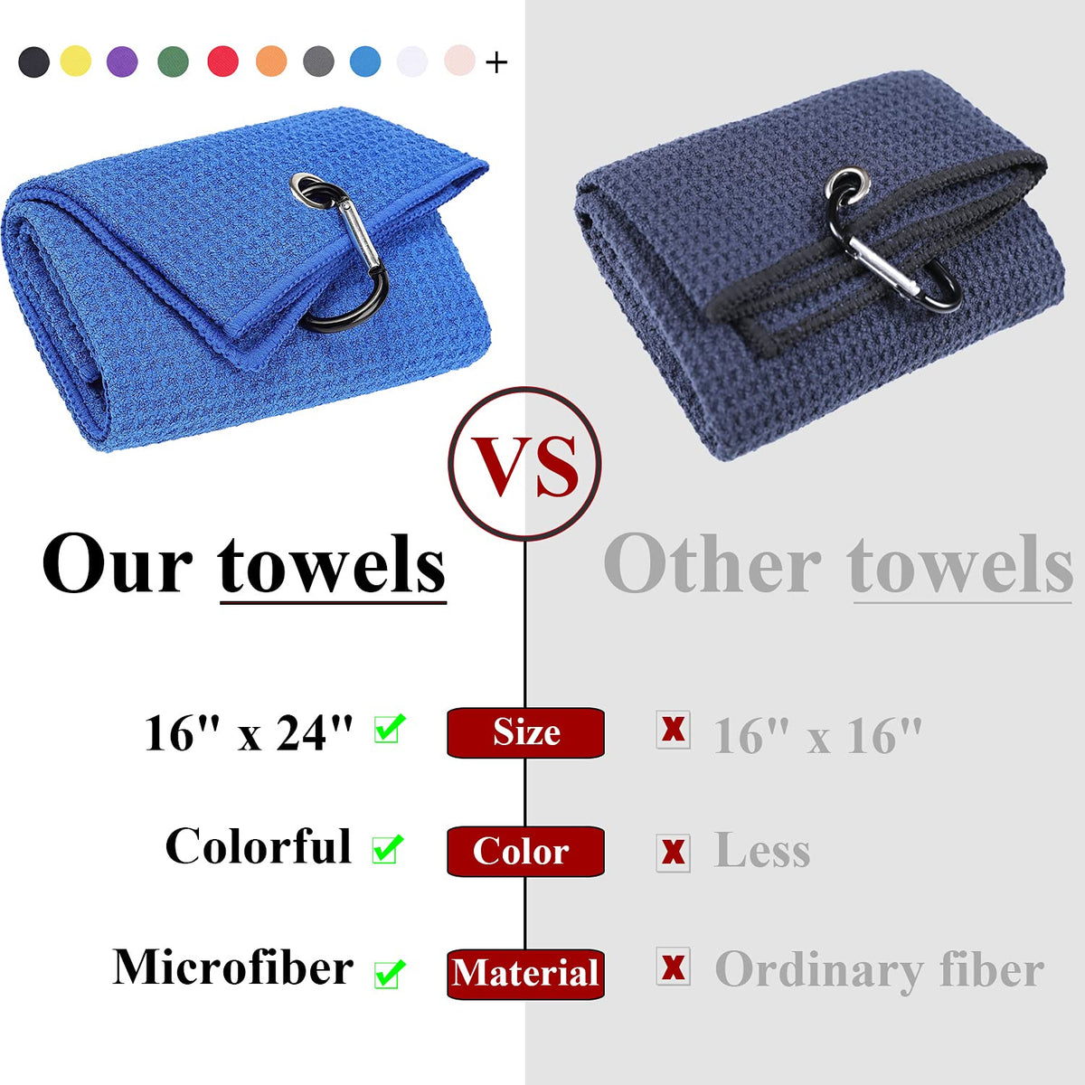 - Q: What are the dimensions of the golf towels? A: Each golf towel measures 15.7 inches by 23.6 inches, making it a compact and convenient size for golf bags.