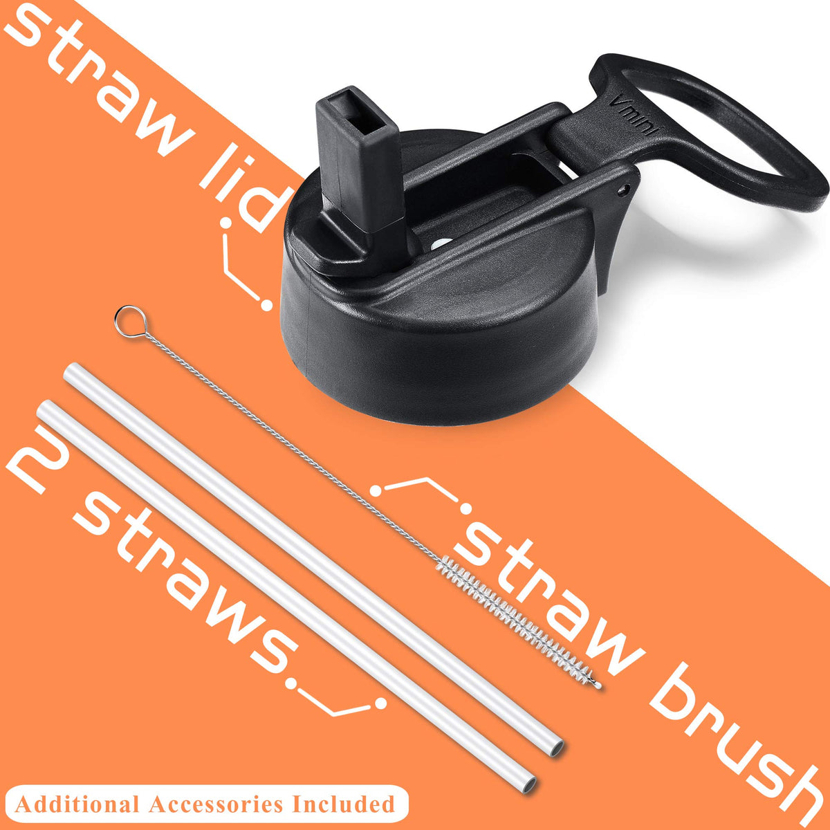 - Q: Does the Vmini Water Bottle come with any accessories? A: Yes, the Vmini Water Bottle includes a straw lid with a wide and rotating handle, two silicone straws, and a straw brush.