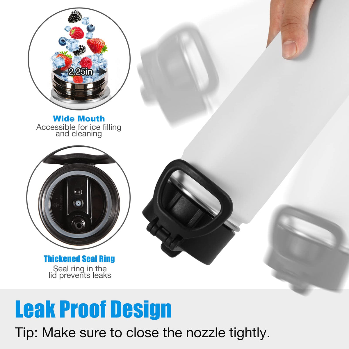- Q: Is the lid of the water bottle designed for convenience? A: Yes, the lid features a wide handle for easy carrying and a secure seal with a thickened waterproof rubber ring.