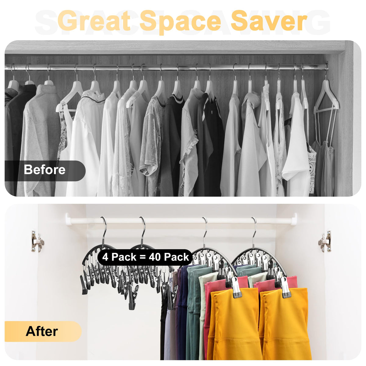 Volnamal Legging Organizer For Closet, Metal Yoga Pants Hangers 4 Pack W/10 Clips Holds 40 Leggings, Hangers Space Saving Hangin