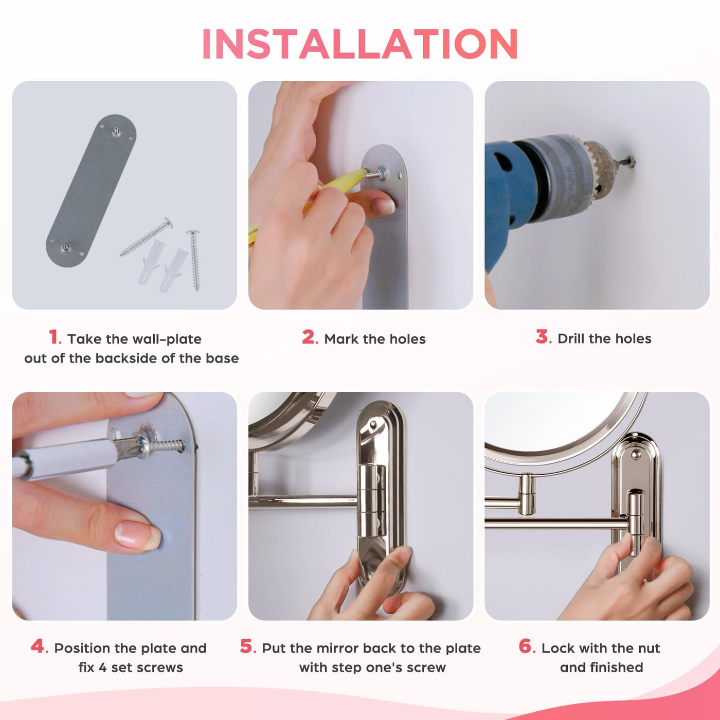- Q: Is this makeup mirror easy to install? A: Yes, all necessary installation accessories and instructions are included, making it easy to install within approximately 5 minutes.