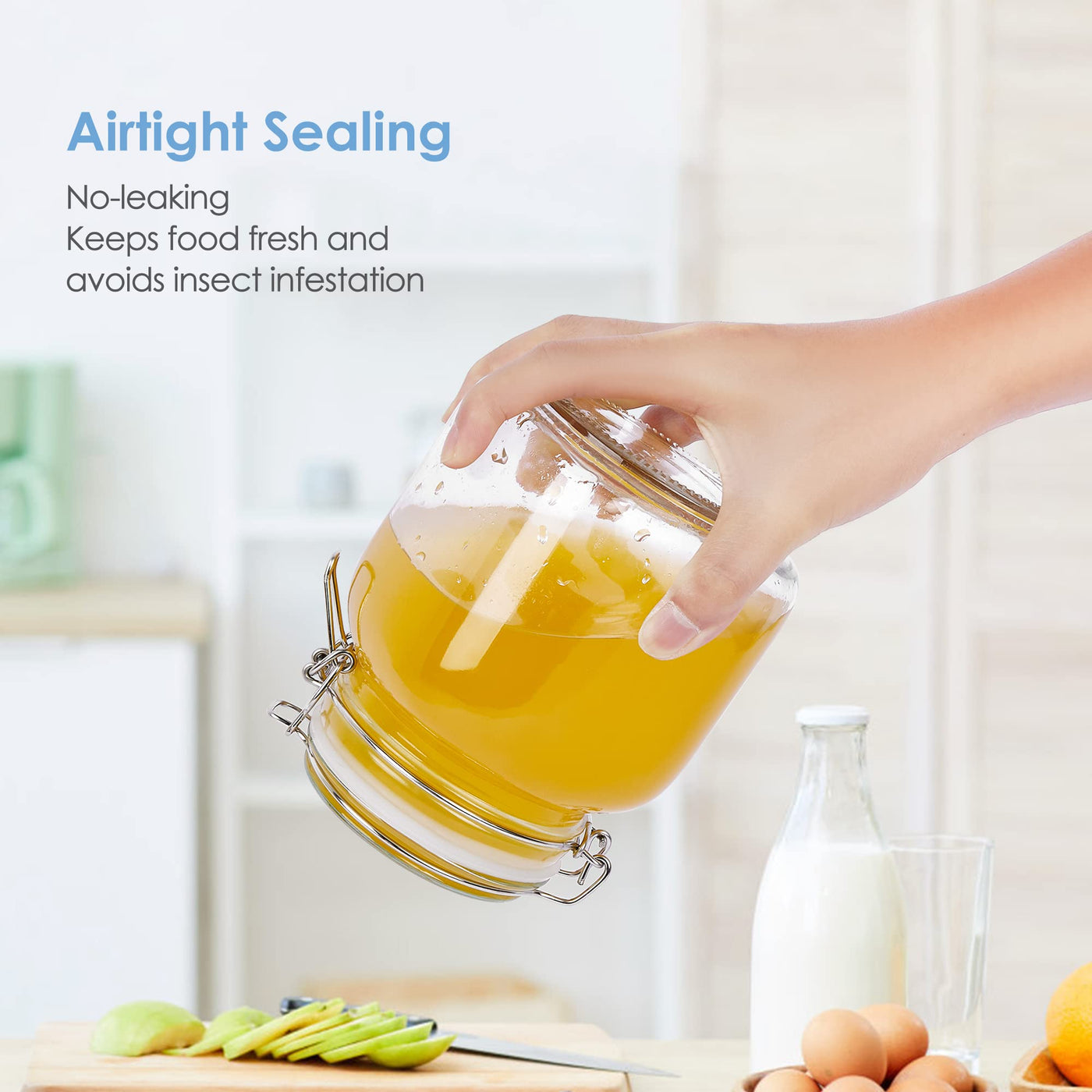 - Q: Are these jars airtight? A: Yes, the jars feature airtight clamp lids with a rubber gasket to ensure a leak-proof seal, keeping your food dry and fresh.