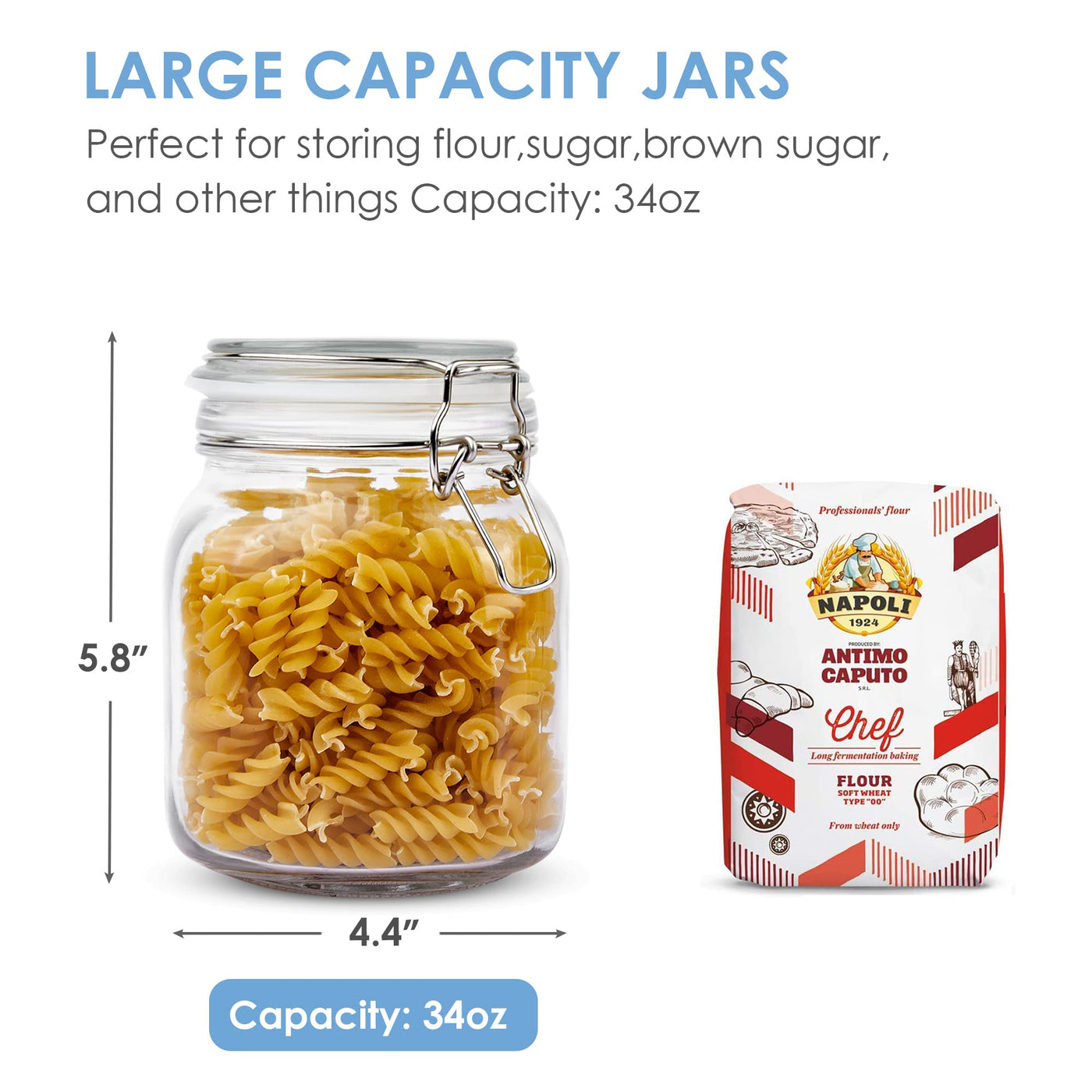 - Q: What is the capacity of each jar? A: Each jar has a capacity of 34oz, making them suitable for a variety of food storage needs.