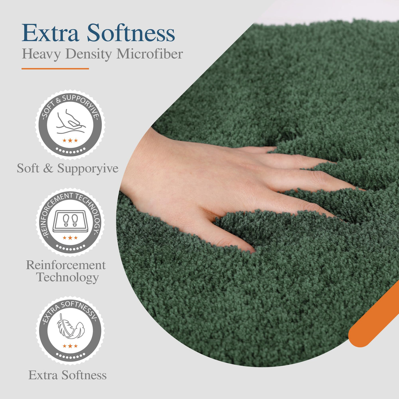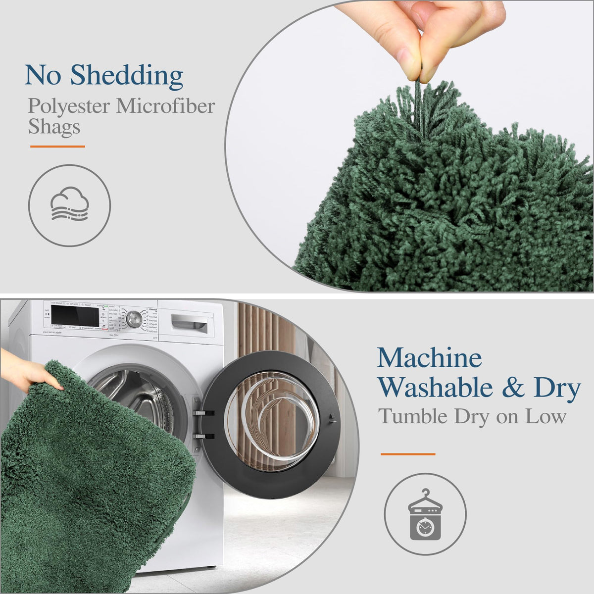 Walensee Bathroom Contour Rug (20X24, Hunter Green) Non Slip Bath Mat For Bathroom Water Absorbent Soft Microfiber Shaggy Bathro