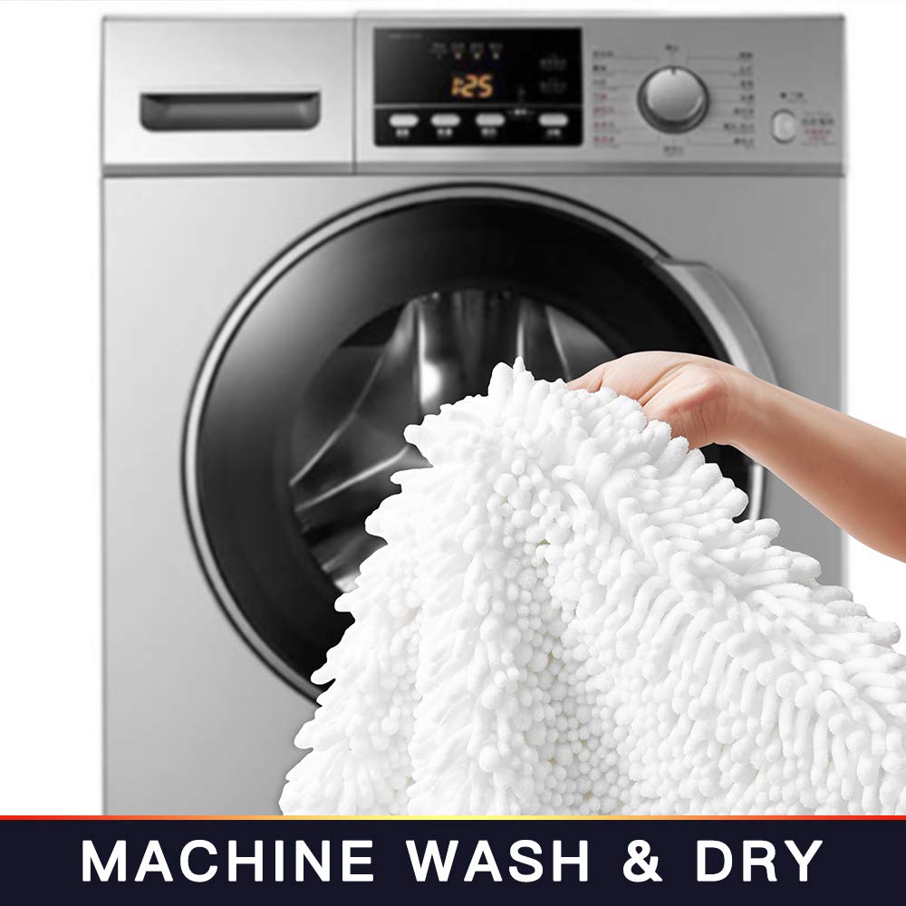 • Q: What material is the Walensee Bathroom Rug made of? A: The rug is made of high-pile chenille fabric, which is ultra-soft and more absorbent than traditional cotton bath rugs.